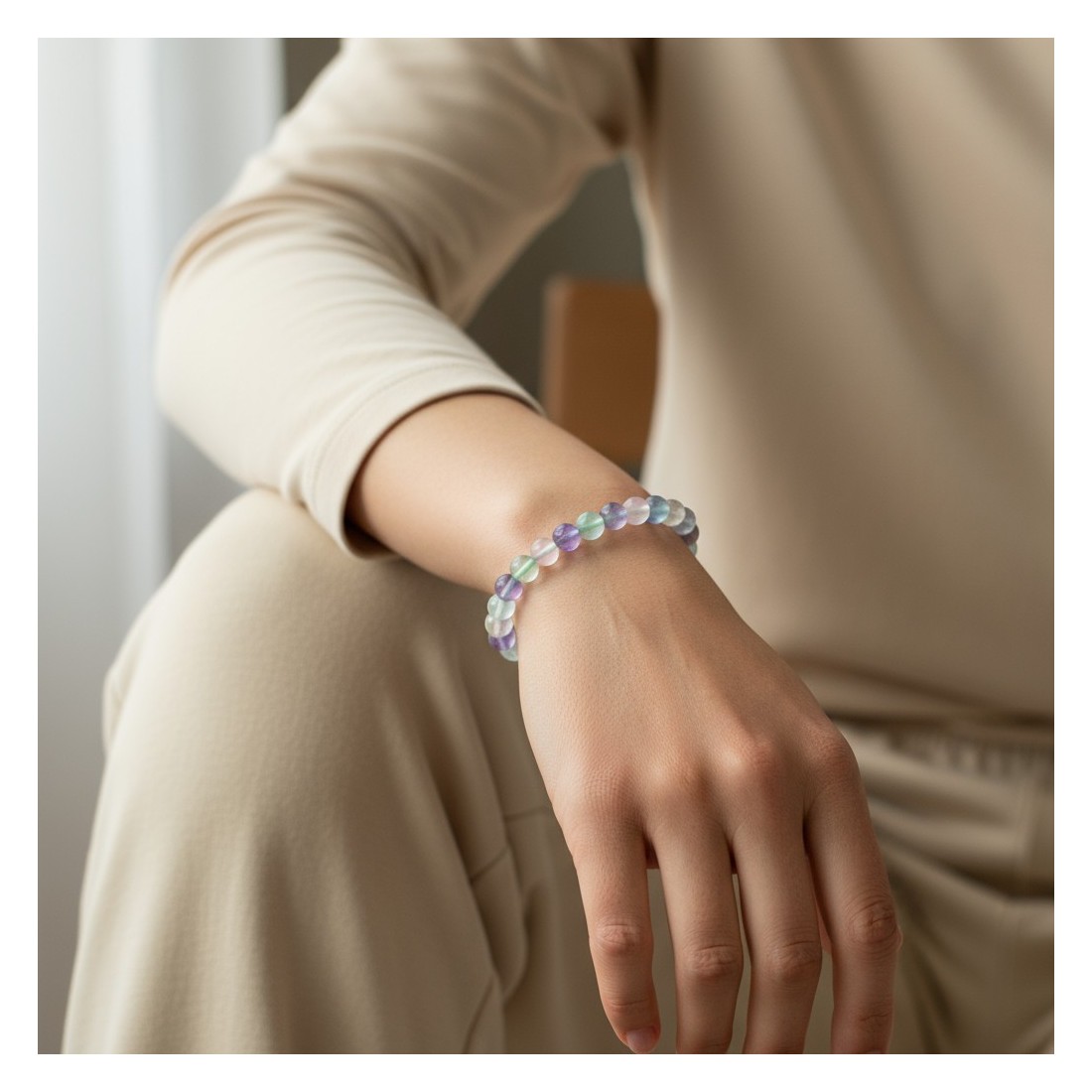 Portez votre bracelet en Fluorine multicolore pendant vos périodes d’étude, de réflexion ou de création pour stimuler la concentration.