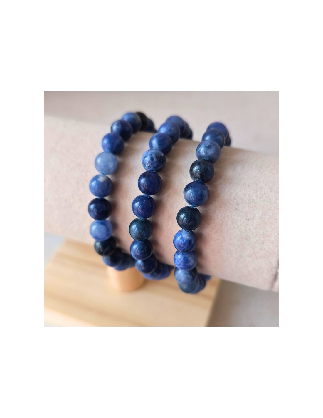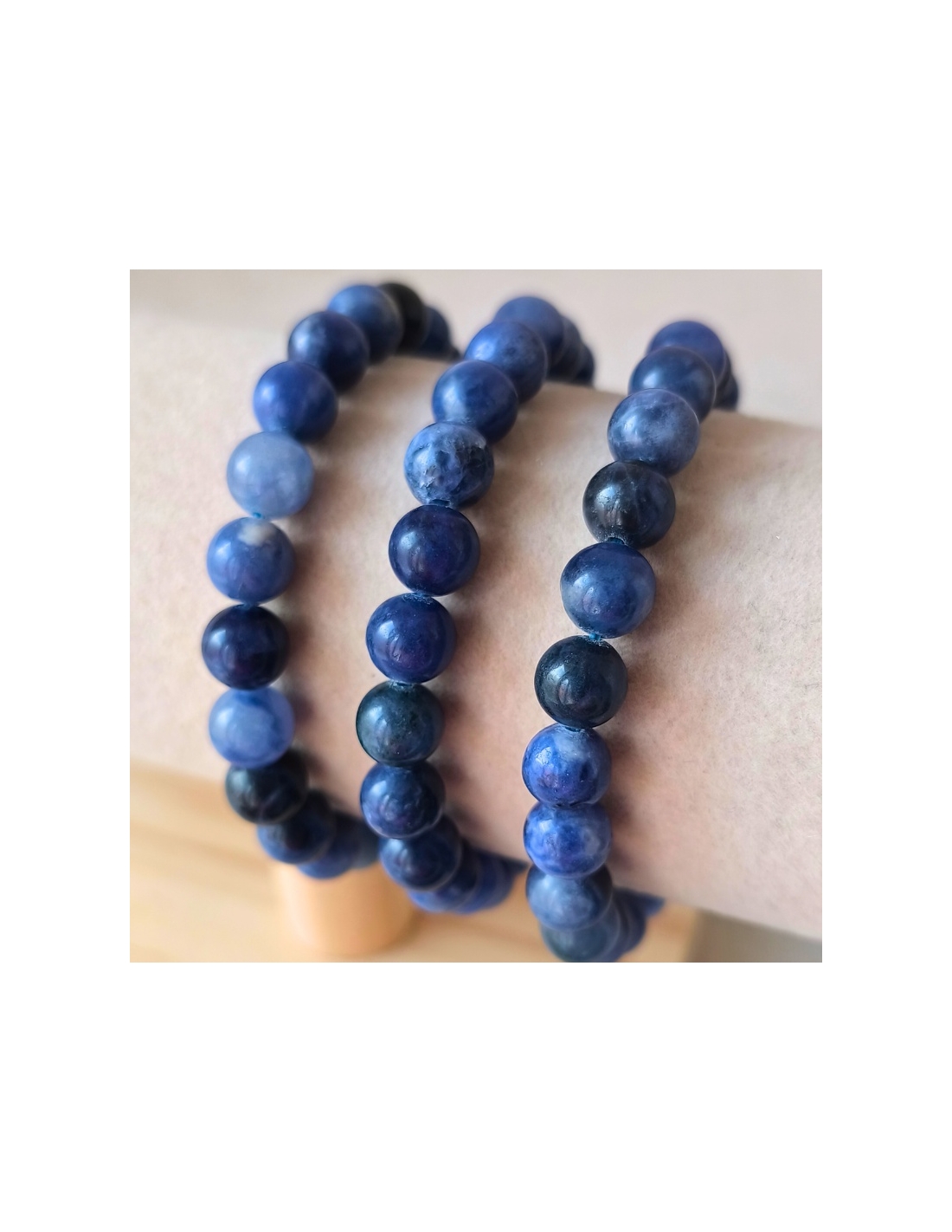 D’un bleu profond veiné de blanc, la Sodalite est une pierre qui inspire calme, lucidité et confiance. En bracelet boule de 8 mm, elle associe élégance naturelle et énergie réconfortante, idéale pour retrouver l’harmonie intérieure et clarifier ses pensées.