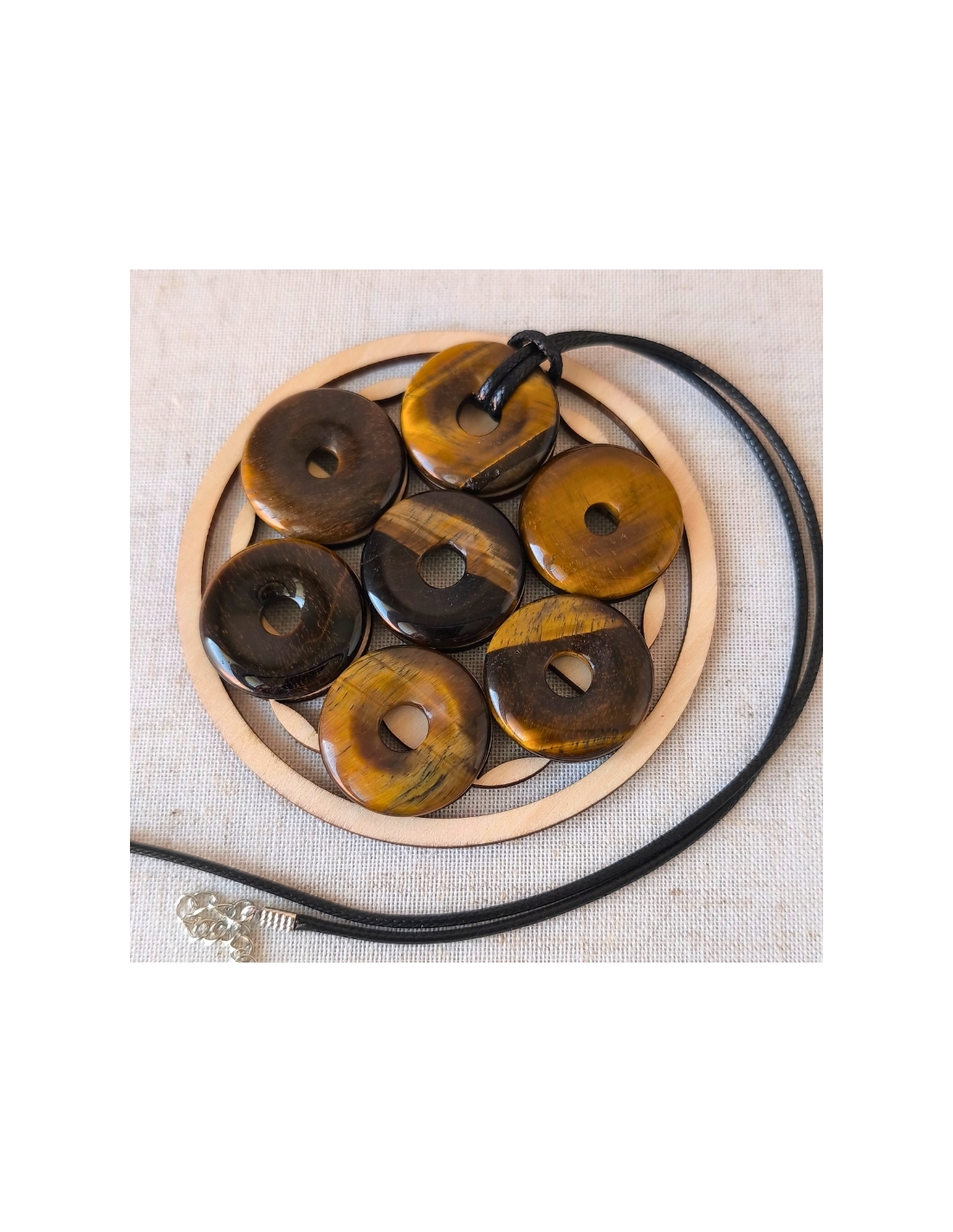 Pendentif donut en Œil de Tigre – (3,5 cm, Afrique du Sud, qualité A)