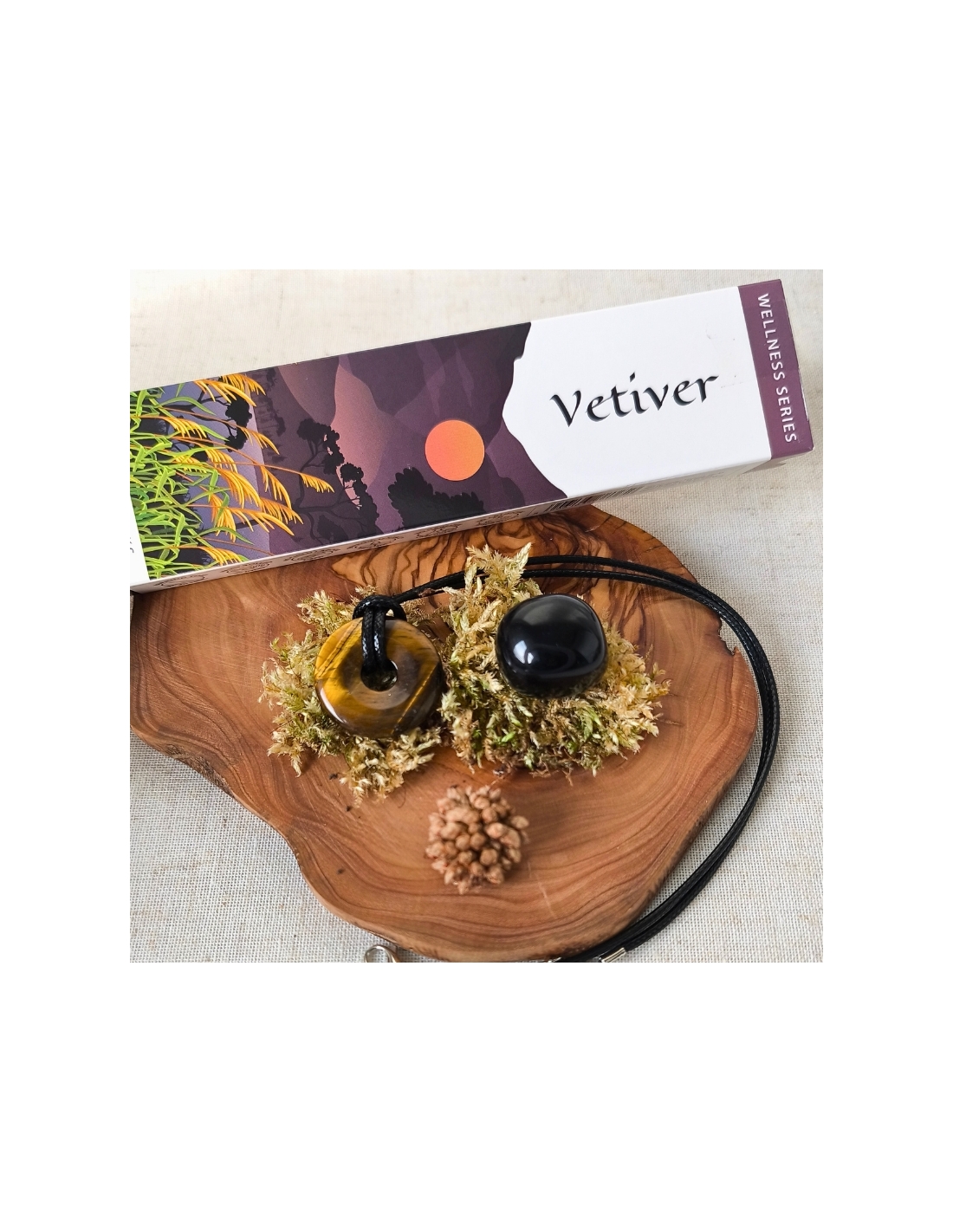 Œil de tigre et Obsidienne noire – Encens Vétiver