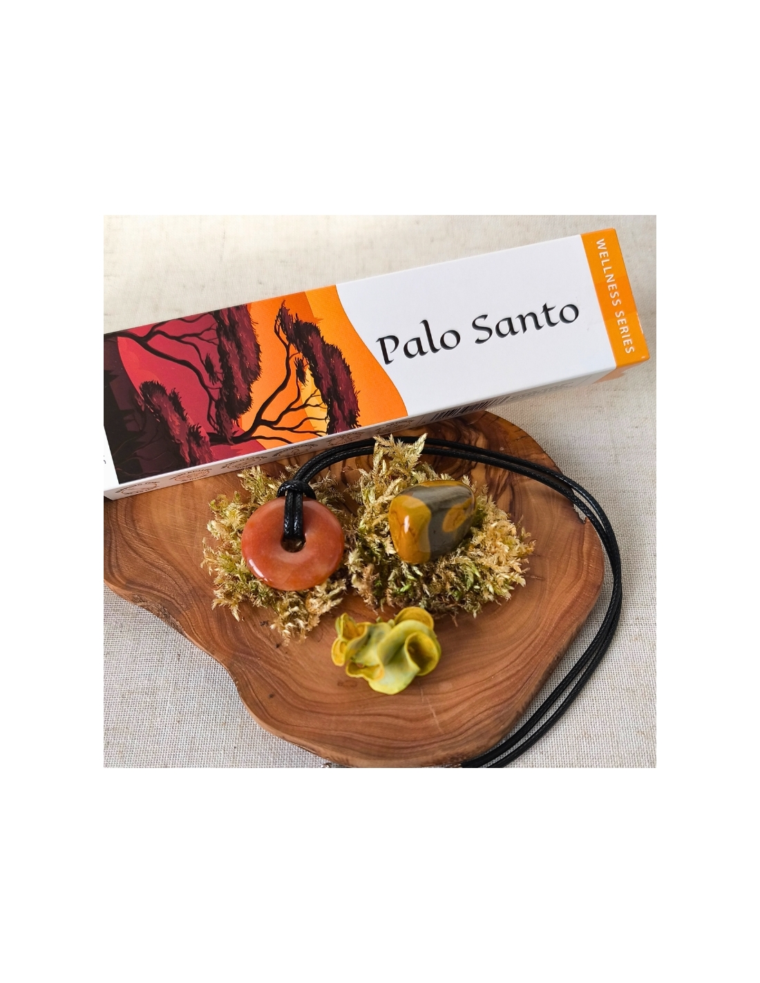 Aventurine orange et Jaspe mokaïte – Encens Palo Santo