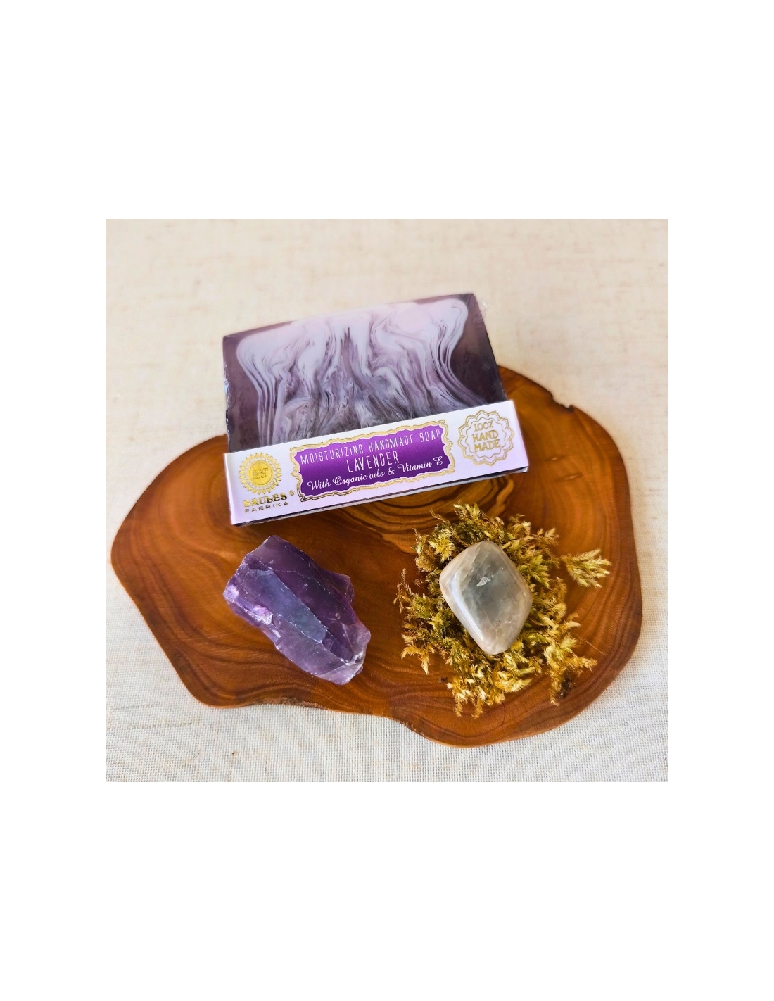 Ce coffret accompagne l’enfant vers des nuits paisibles et rassurantes. L’améthyste brute calme les pensées et favorise l’endormissement. La pierre de lune multicolore roulée équilibre les émotions et diffuse une énergie tendre, idéale pour préparer au repos. Le savon artisanal à la lavande, relaxant et délicat, transforme la toilette du soir en un rituel apaisant. Ensemble, ces trésors créent une bulle de sérénité qui aide l’enfant à trouver le sommeil et à s’éveiller en douceur.