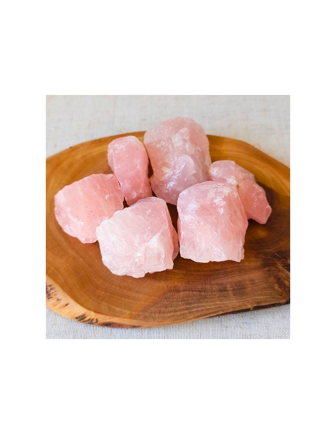 Quartz rose brut (3–4 cm, Brésil, qualité A) – Pierre d’amour et de réconfort, elle apaise et rassure le cœur.