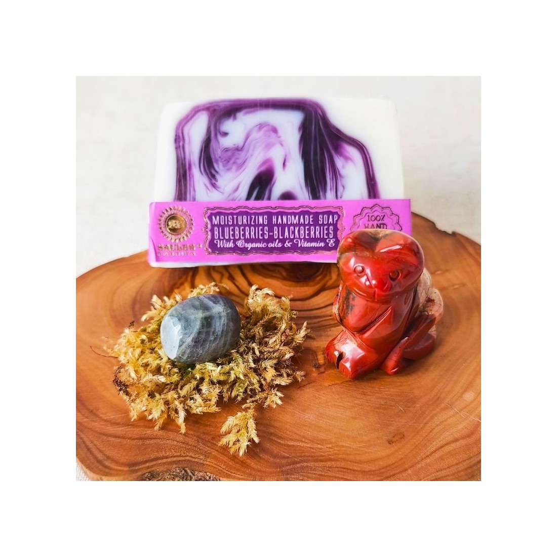 Coffret Chat protecteur – Jaspe rouge, Labradorite et savon Myrtille & Mûre