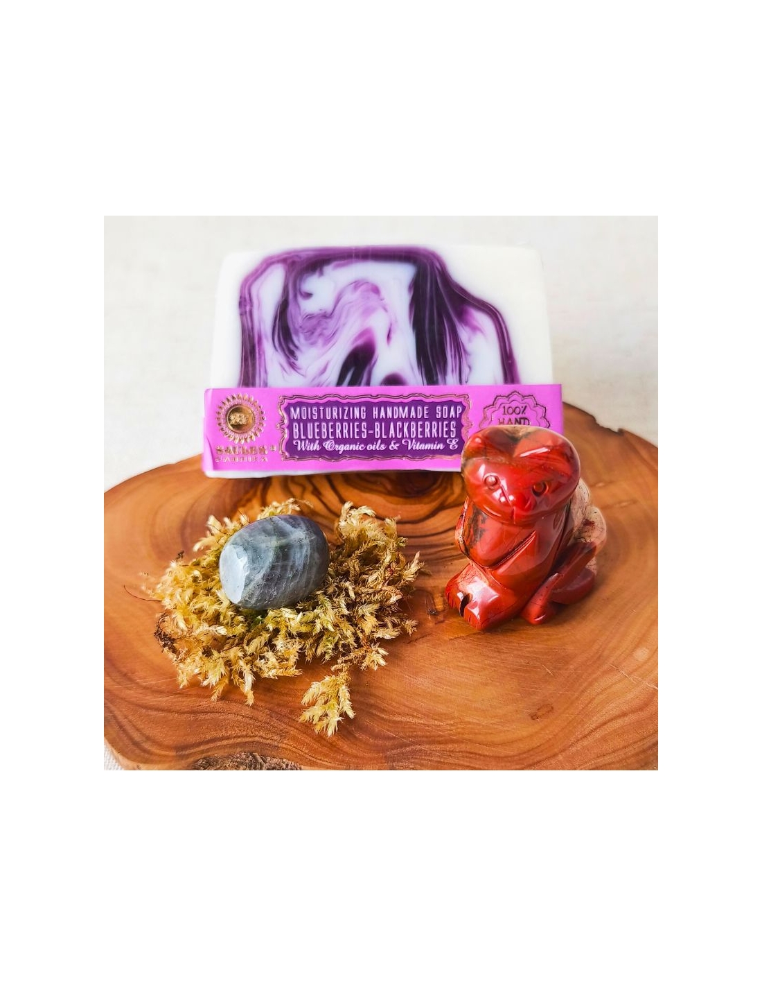 Coffret Totem Chat protecteur – Jaspe rouge, Labradorite et savon Myrtille-Mûre