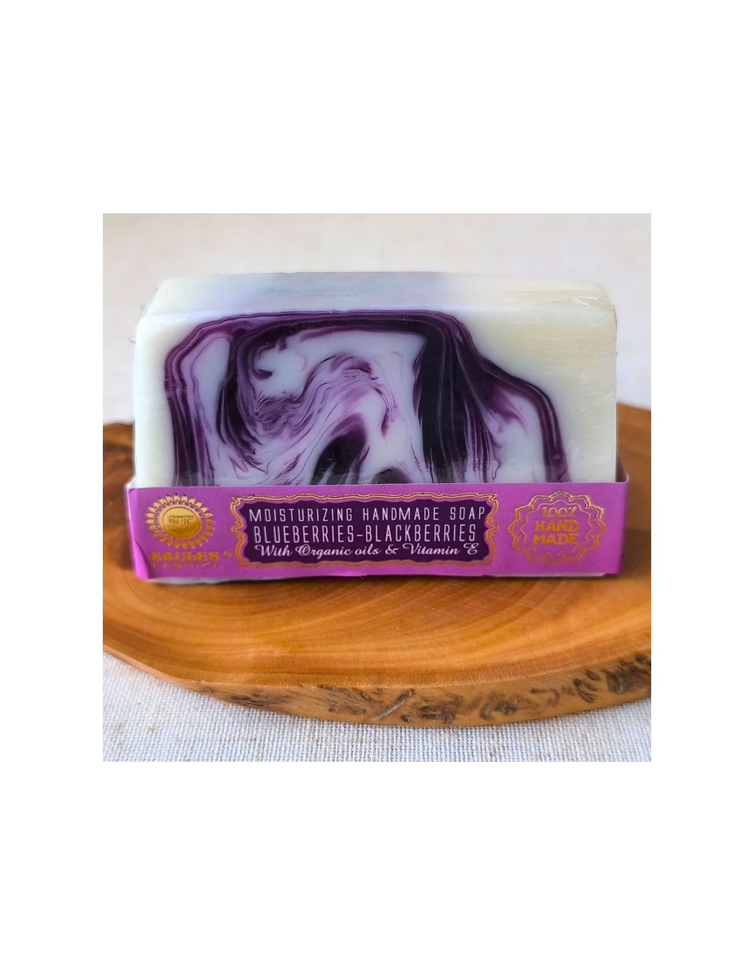 1 Savon artisanal Myrtille et Mûre (80g, Saules Fabrika, Lettonie) – Doux et naturel, il enveloppe la peau d’un parfum gourmand et fruité.