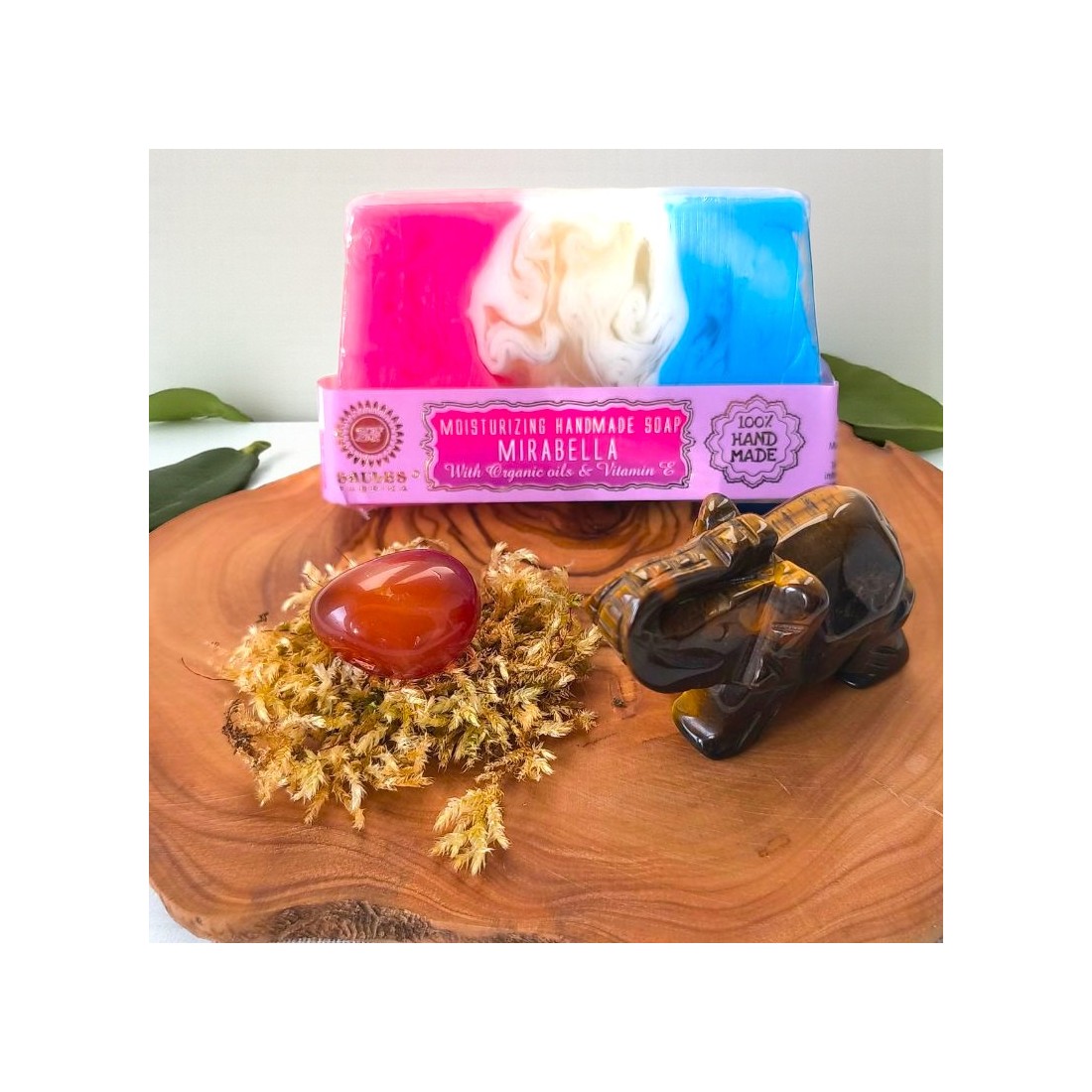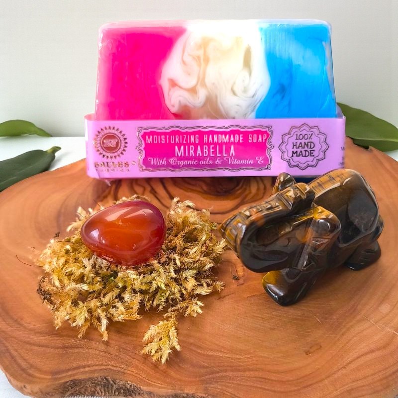 Totem Éléphant Force et Confiance – Œil de tigre, Cornaline et savon Mirabelle