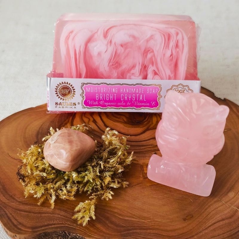 Coffret Totem Chouette étoilée – Quartz rose, Pierre de lune multicolore et savon Bright Crystal