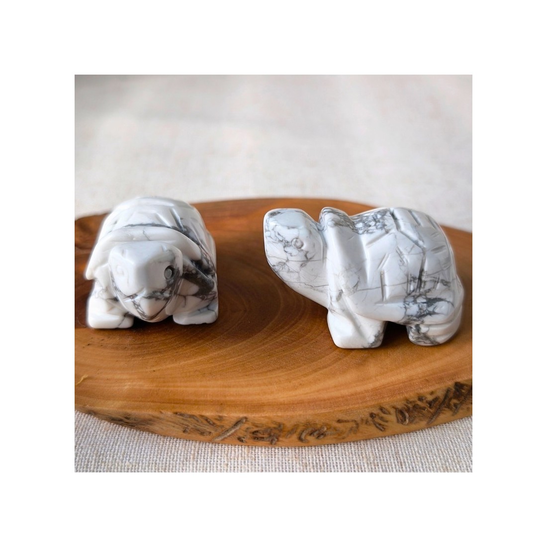 Tortue en Howlite blanche (50 mm – Zimbabwe – qualité A)