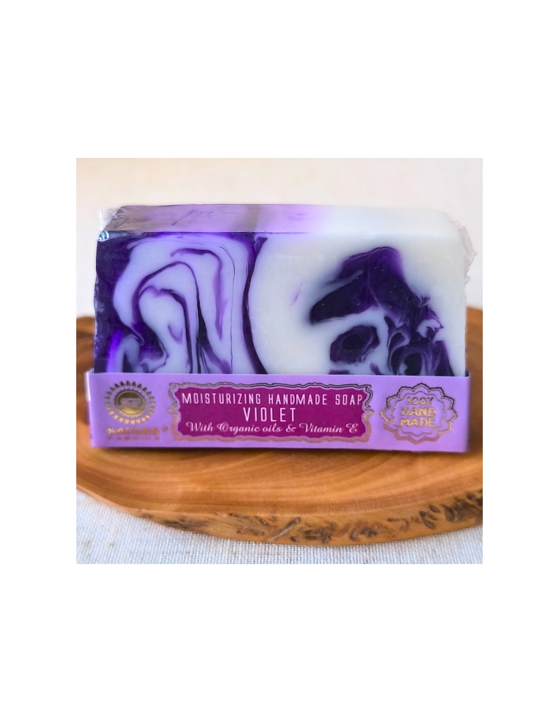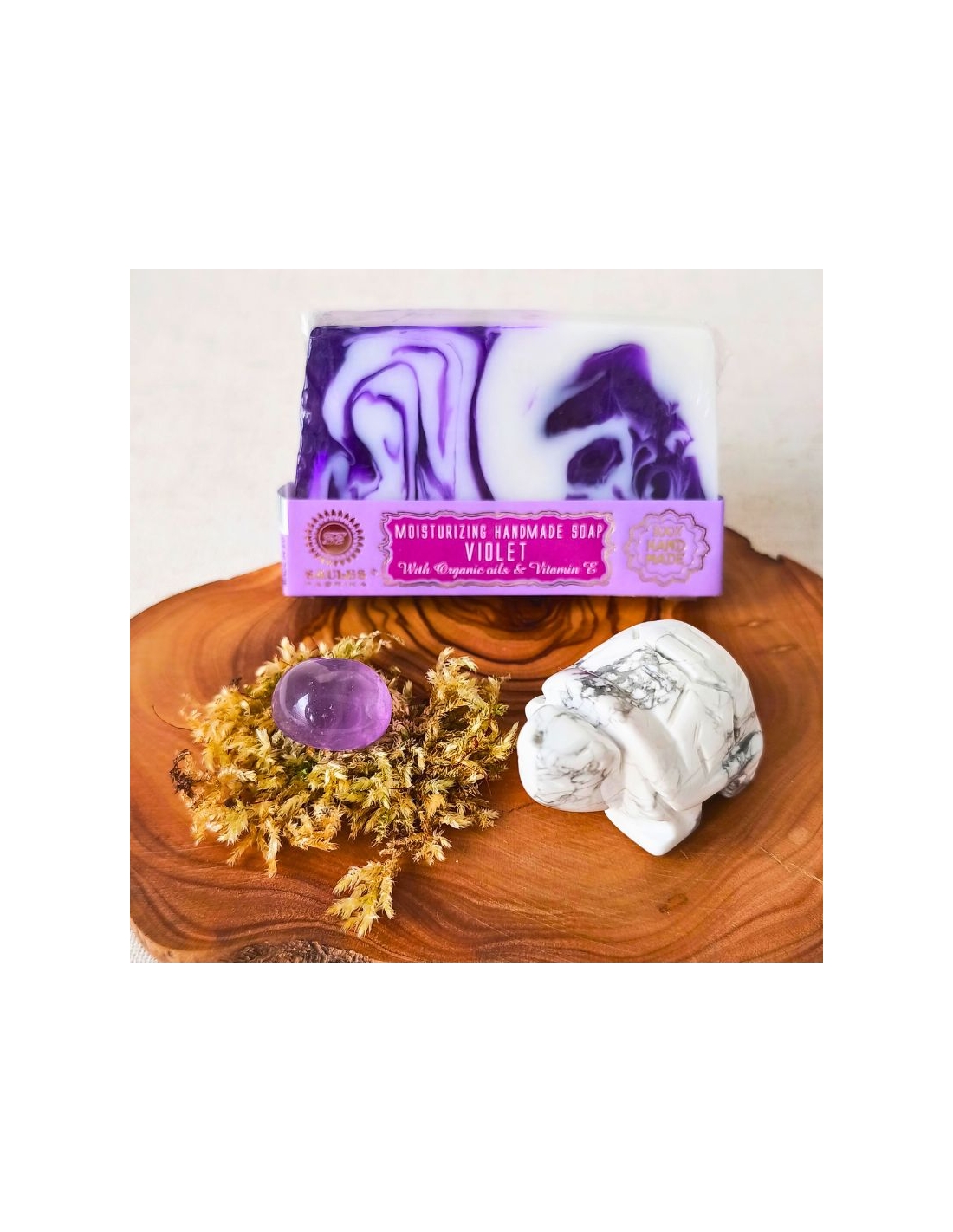 Savon artisanal Violette (80 g, Saules Fabrika, Lettonie) – Naturel et délicat, il diffuse une senteur florale douce et réconfortante.