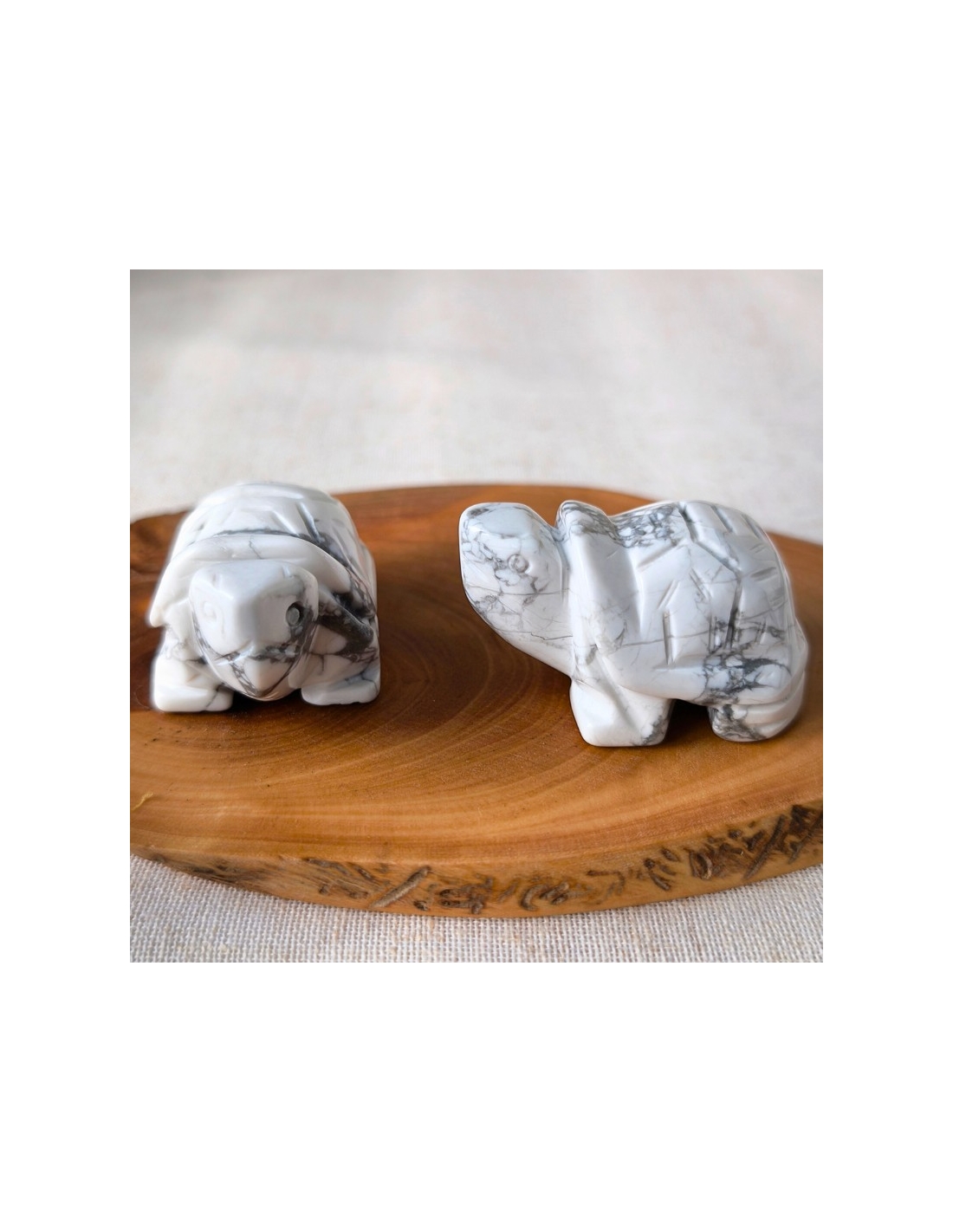Tortue en Howlite blanche (50 mm, Zimbabwe, qualité A) – Symbole de sagesse et de calme, elle protège et apaise les émotions.