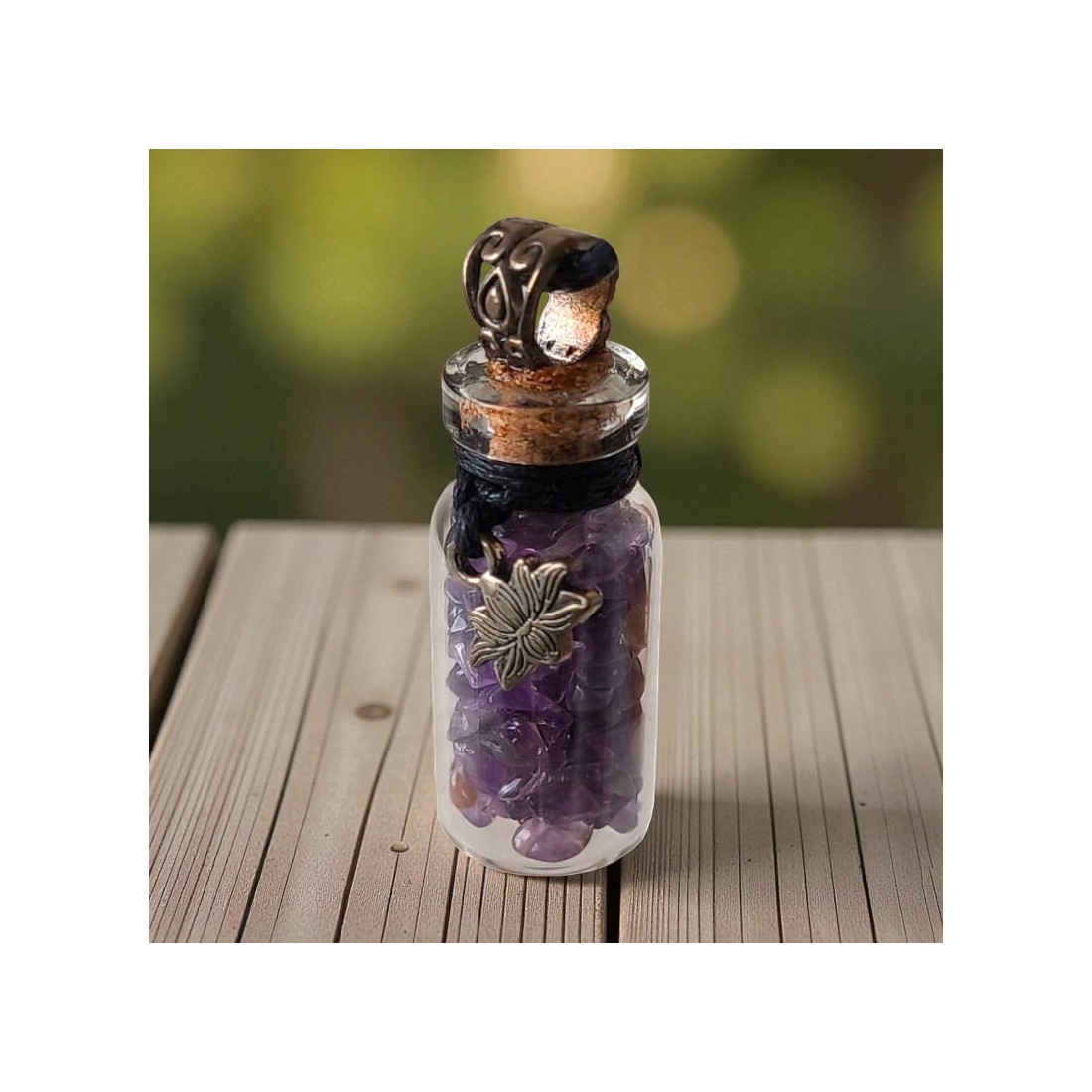Pendentif-fiole rempli d’éclats d’Améthyste – 3,6 cm, Inde, qualité A