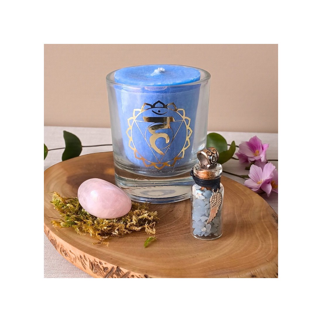 Cristaux de Tendresse – Angélite, Quartz rose et bougie Rose Camomille