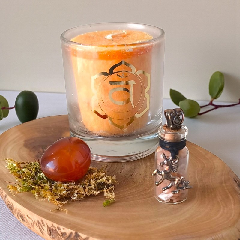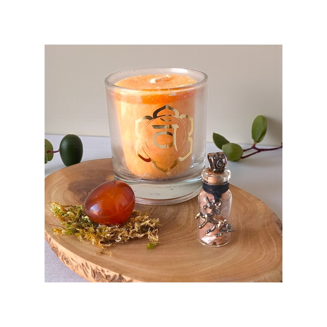 Cristaux de Créativité – Pierre de lune, Cornaline et bougie boisée