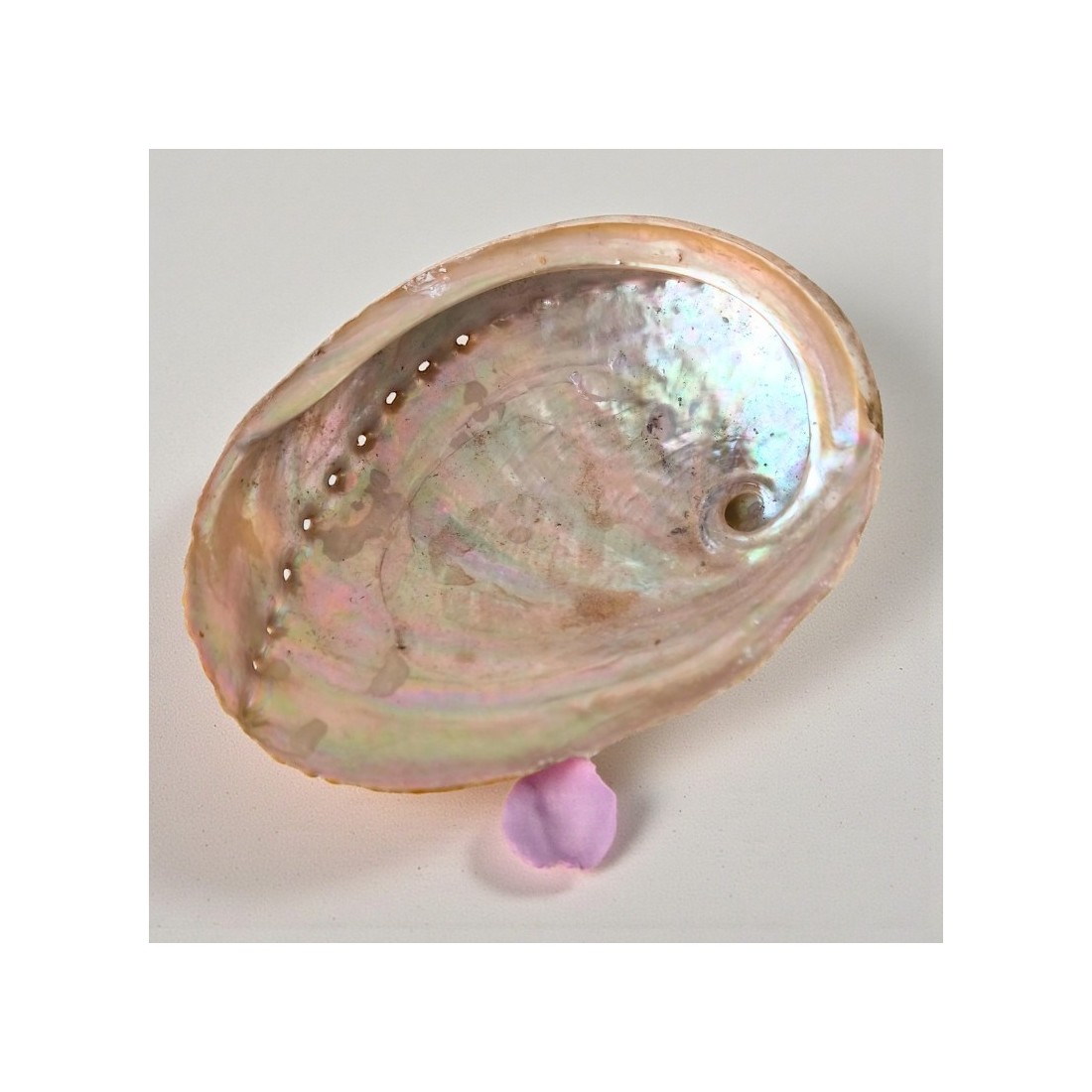 La coquille d’ormeau Haliotis est un objet naturel aux reflets nacrés doux et lumineux. Chaque coquille, façonnée par la mer, présente des nuances uniques qui rendent chaque pièce authentique.