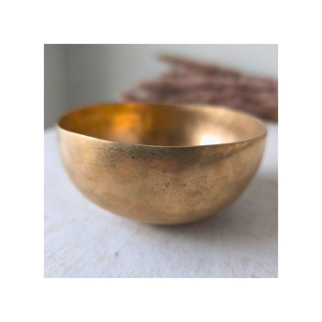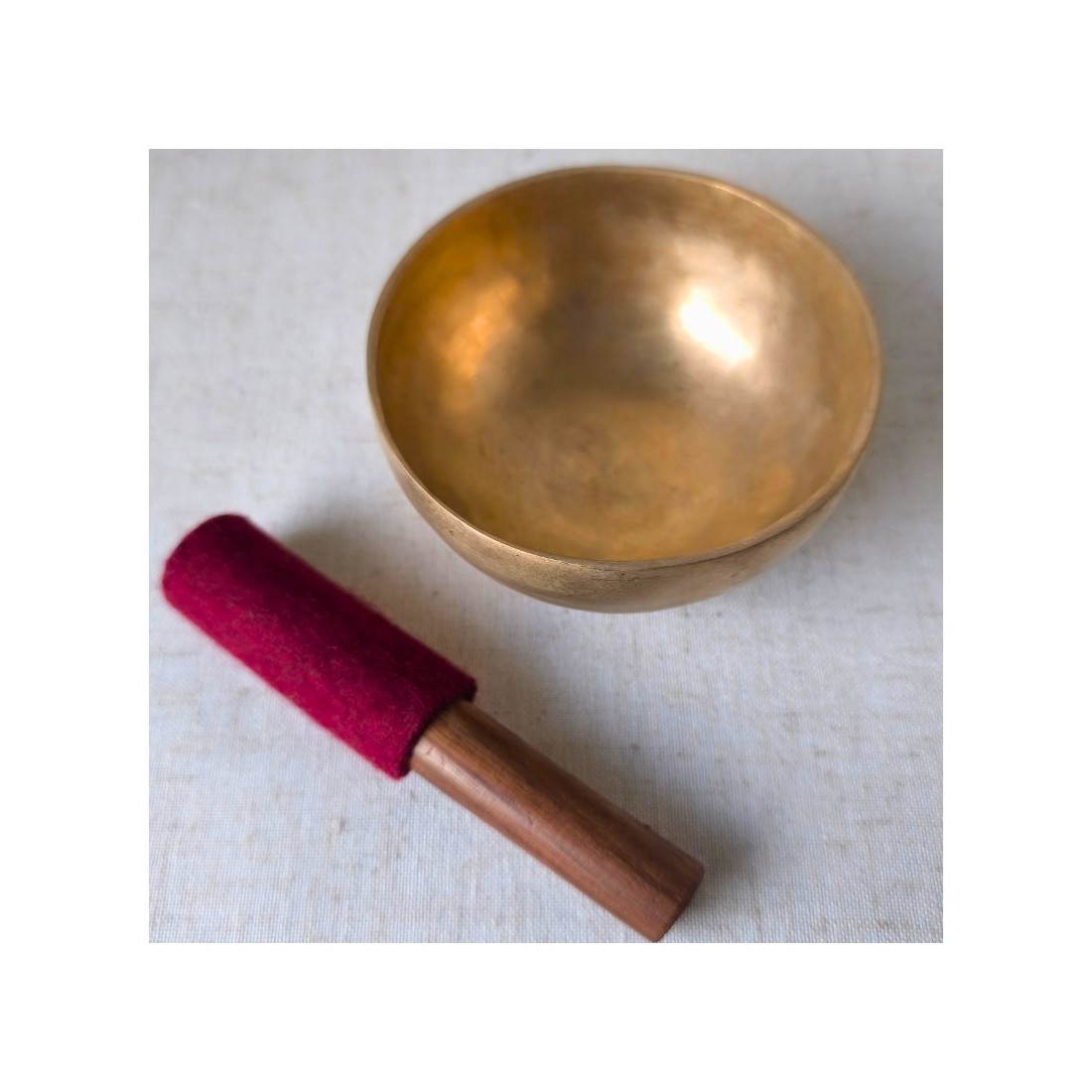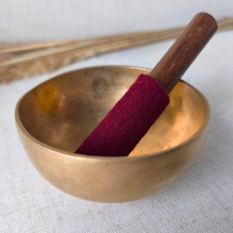 Sa sonorité longue et stable est obtenue par un geste circulaire le long du rebord, créant une vibration continue souvent appelée “son cosmique” dans la tradition himalayenne : un son qui invite naturellement au recentrage, à la pleine présence et au relâchement.