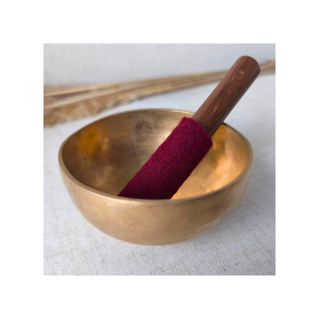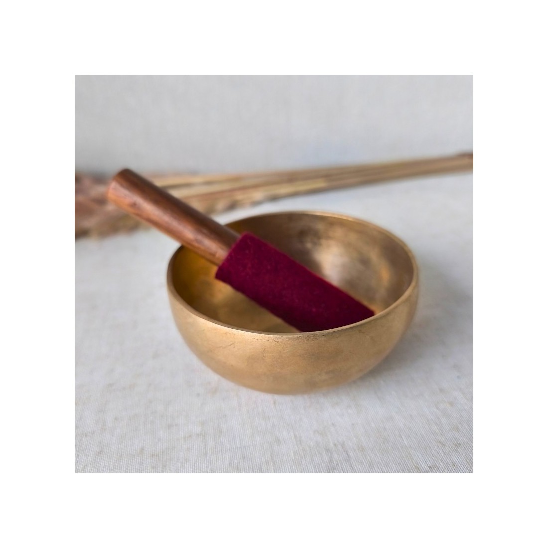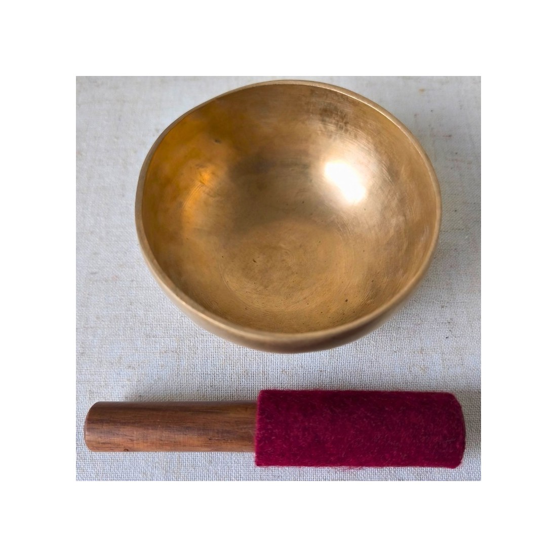 Sa sonorité longue et stable est obtenue par un geste circulaire le long du rebord, créant une vibration continue souvent appelée “son cosmique” dans la tradition himalayenne : un son qui invite naturellement au recentrage, à la pleine présence et au relâchement.