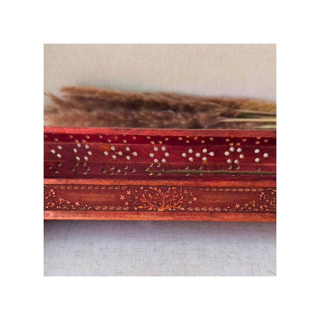 Boîte brûle-encens Arbre de Vie - Bois d’acacia (31 cm)