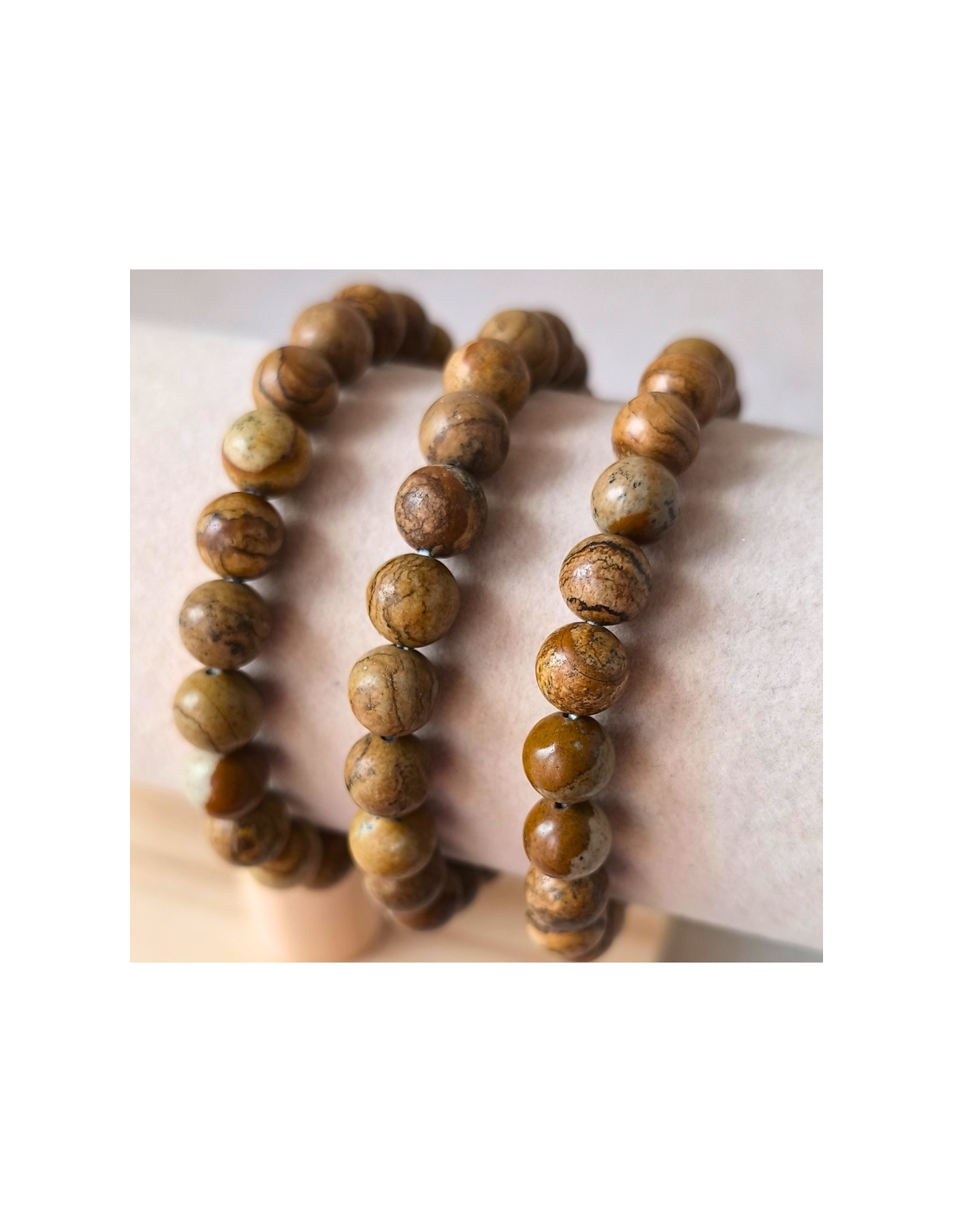 Le Jaspe paysage, aux tons doux allant du beige sable au brun terre, est une pierre qui invite à l’harmonie et à la contemplation. En bracelet boule de 8 mm, il diffuse une énergie d’ancrage serein, idéale pour retrouver stabilité et sagesse intérieure.