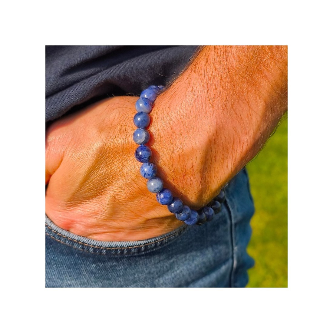 Bracelet boules homme 8 mm en Sodalite de Namibie, pierre naturelle de clarté et de confiance.