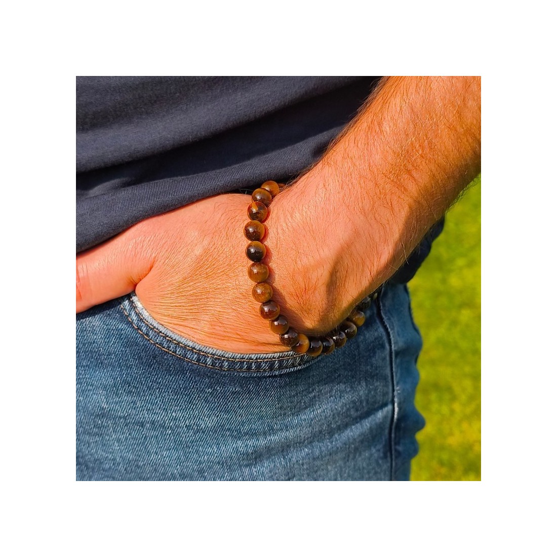 Bracelet boule homme 8 mm en Œil de tigre d’Afrique du Sud, pierre naturelle de protection et de confiance.