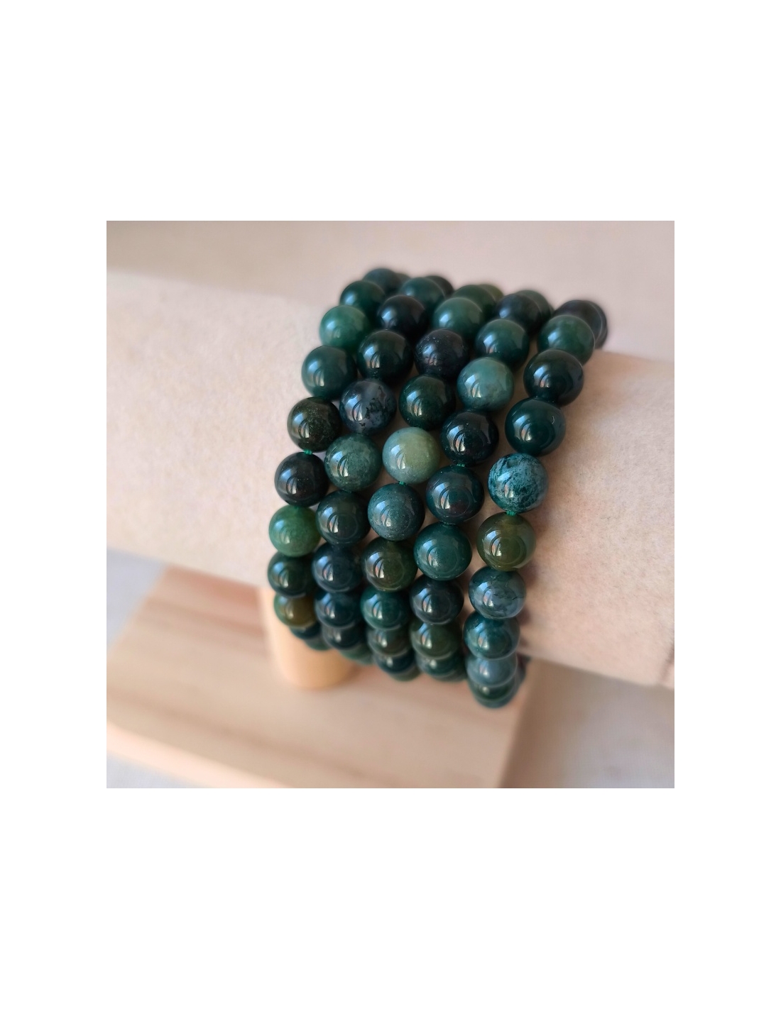 Bracelet boule en Agate mousse naturelle, pierre de croissance et d’équilibre.