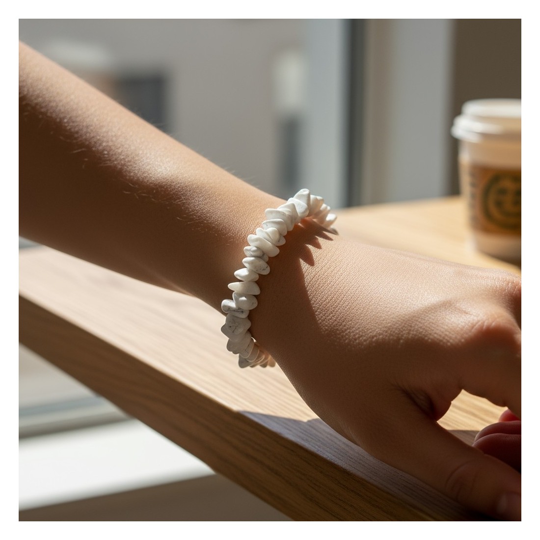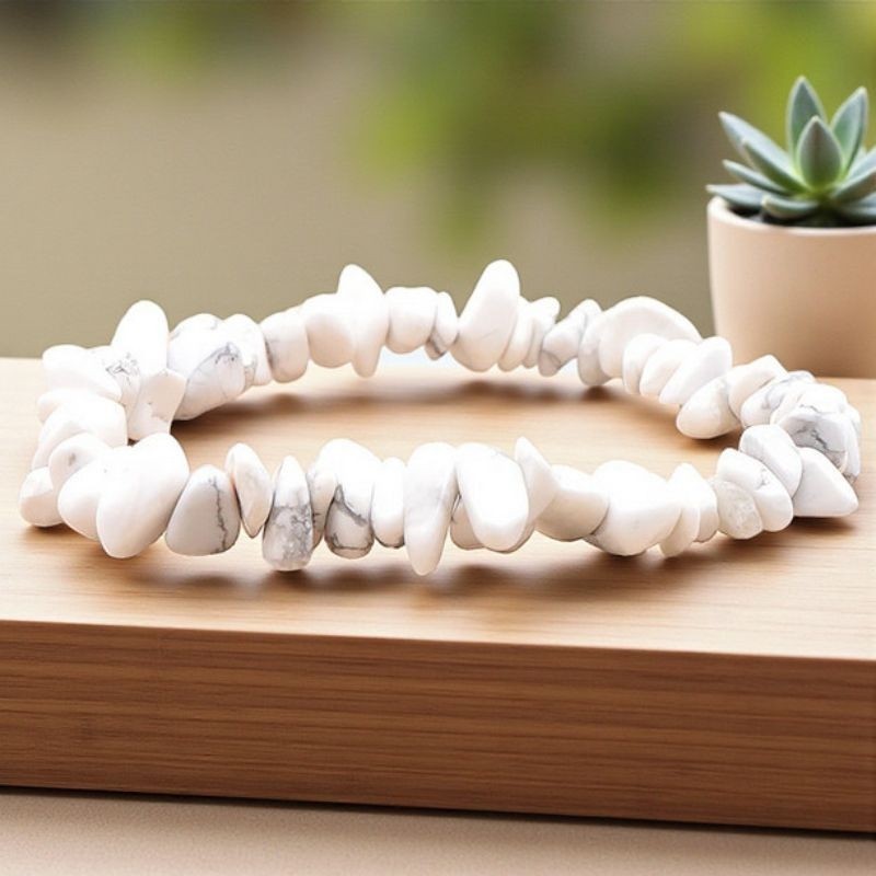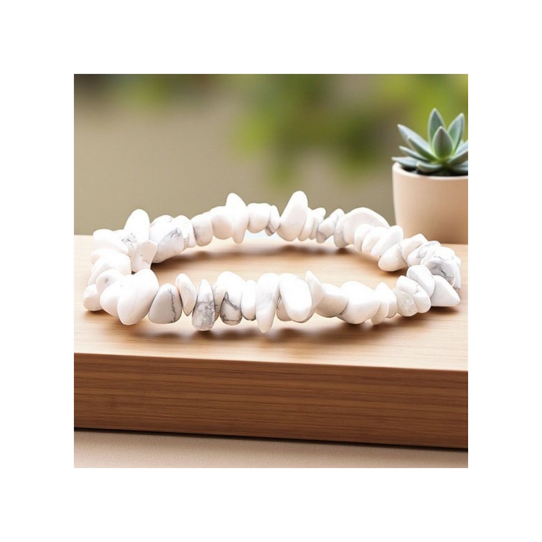 Bracelet baroque en Howlite blanche du Zimbabwe, pierre naturelle de calme et de patience.