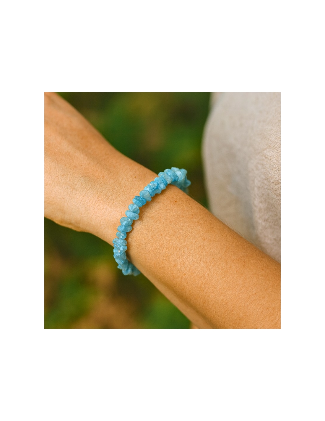 Pierre de communication et d’apaisement, l’Aigue-marine aide à calmer les émotions, à fluidifier les échanges et à favoriser l’harmonie intérieure. Portée au poignet, elle devient un talisman de paix et de confiance en soi, idéal pour traverser les périodes agitées.