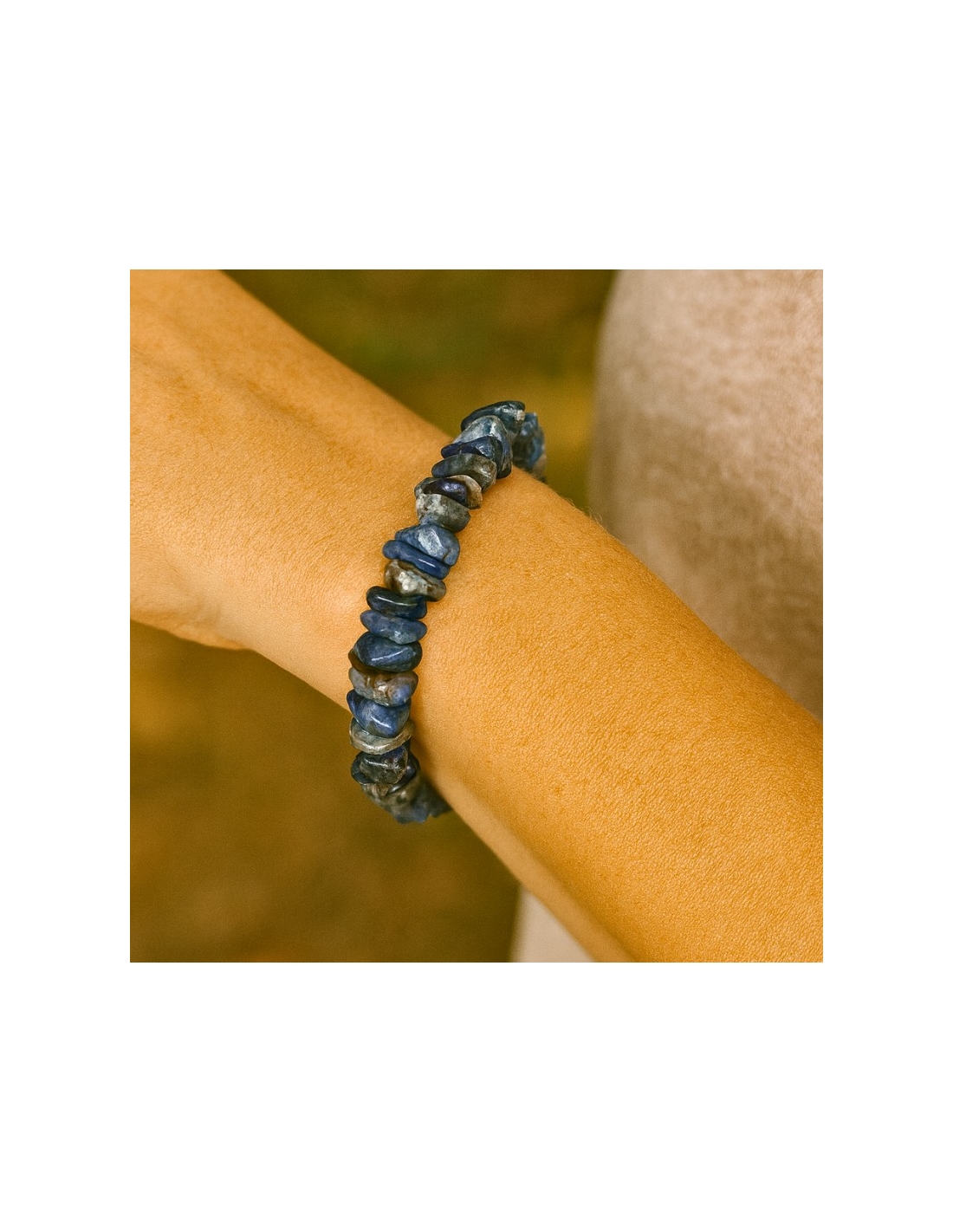 La Sodalite, aux nuances de bleu profond parcourues de veinures blanches, est une pierre de lucidité et de discernement. Ce bracelet baroque, composé de fragments polis et irréguliers, allie authenticité et élégance tout en diffusant les énergies apaisantes de la pierre.