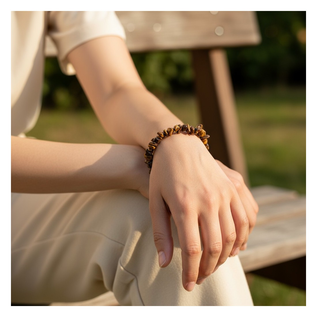 Bracelet baroque en Œil de tigre d’Afrique du Sud, pierre naturelle de protection et de confiance.