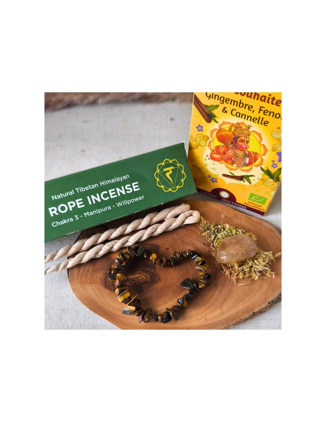 Œil de tigre et Citrine naturelle – Encens Genévrier et Laurier – Infusion Gingembre Fenouil Cannelle