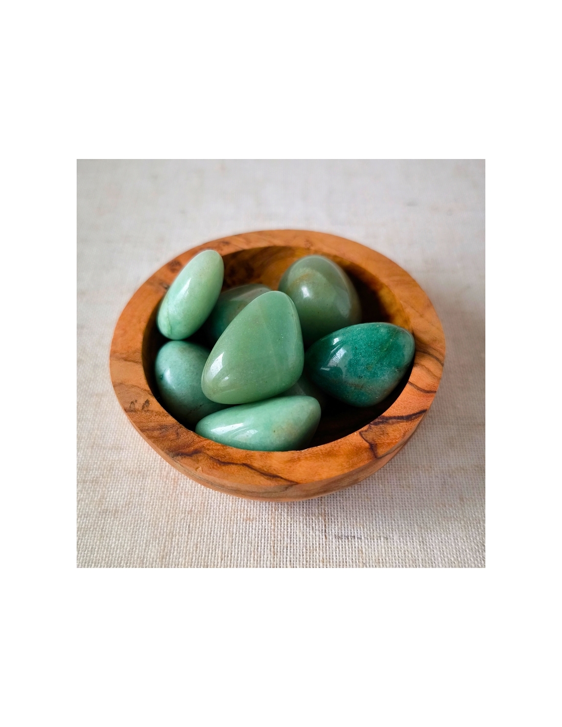 Aventurine verte : purifier à la fumée de sauge, recharger à la lumière douce du matin.