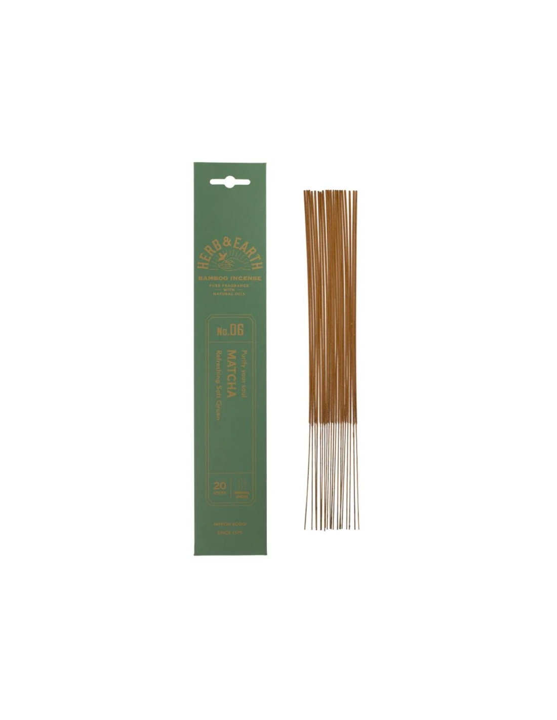 Encens nippon Herb & Earth – Matcha (20 bâtonnets, Nippon Kodo, Vietnam)