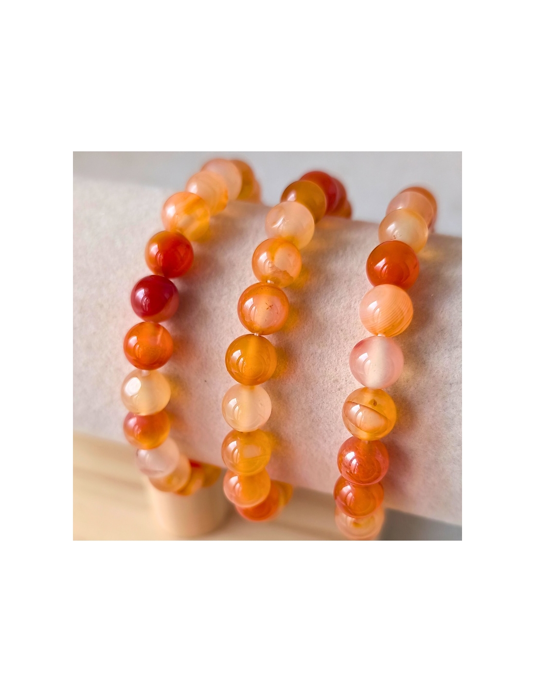 Bracelet boule en Cornaline – (16-18 cm, perles 8 mm, qualité A, Brésil)