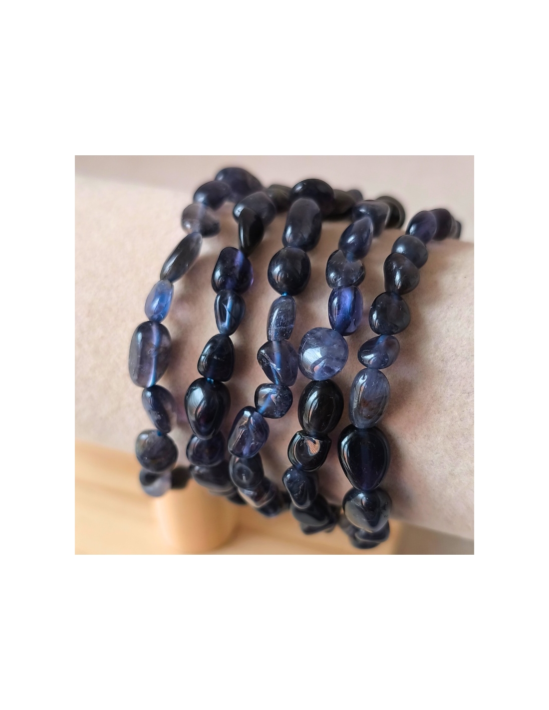 Bracelet pierres roulées en Cordiérite (16–18 cm, qualité A, Inde)