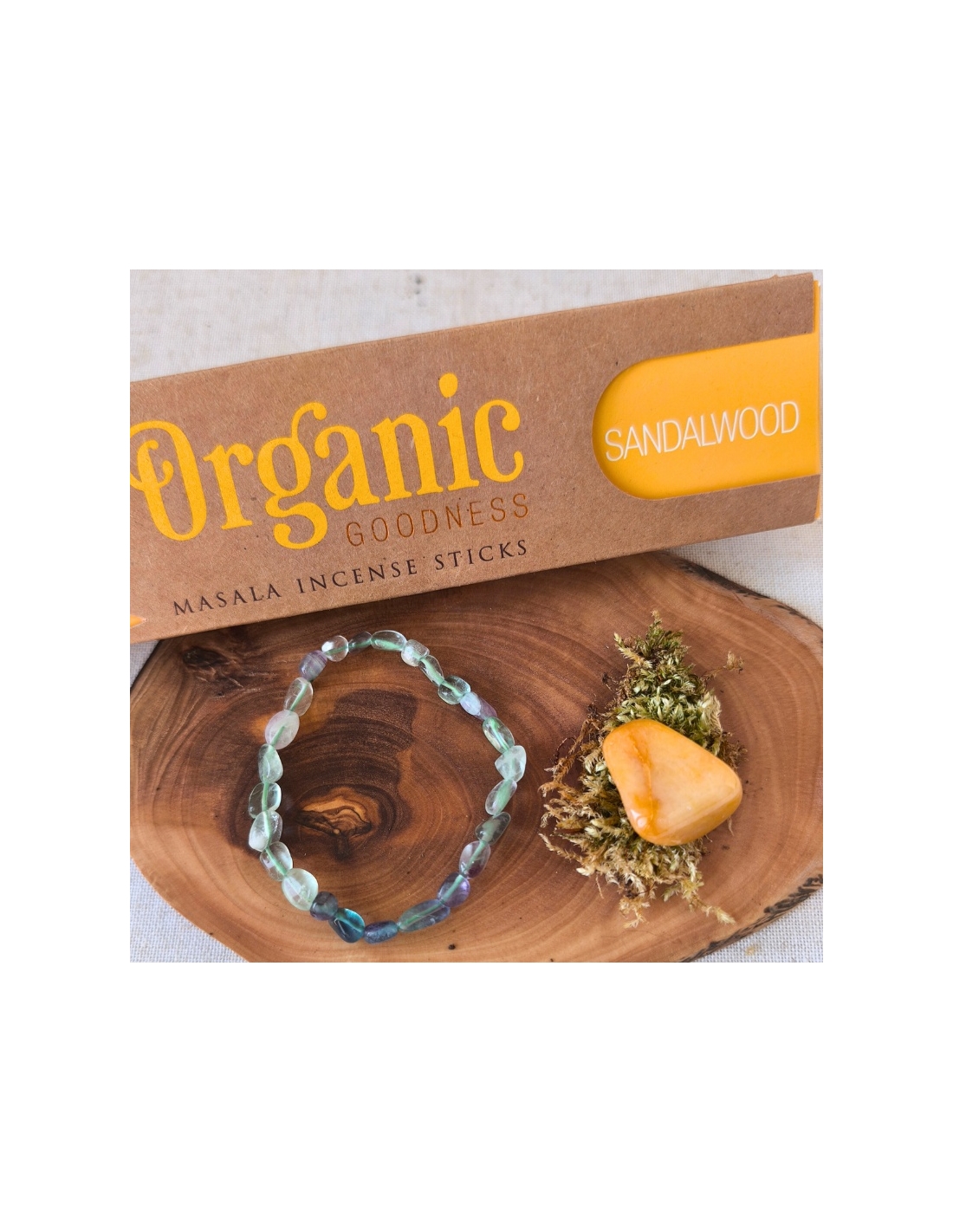 Fluorine multicolore, Aventurine jaune et Encens Santal