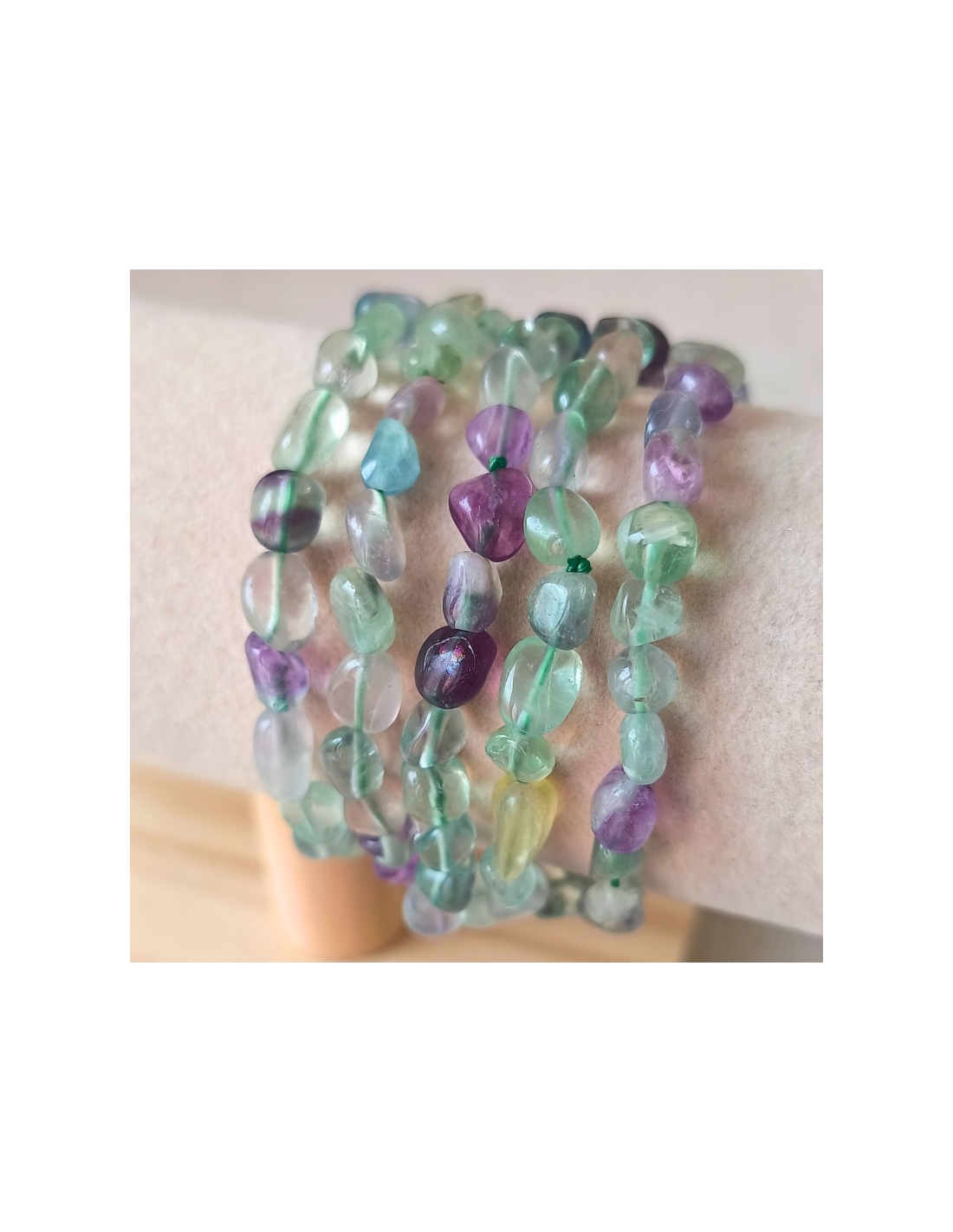 Bracelet pierres roulées en Fluorine multicolore (16–18 cm, qualité A, Chine)