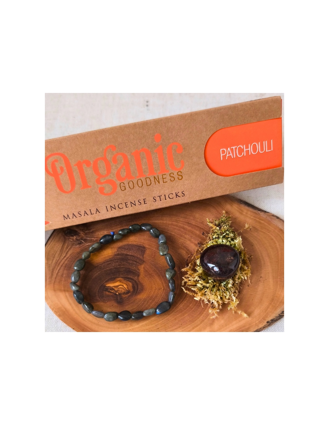 L’encens Patchouli diffuse un parfum chaud et terreux qui renforce la confiance et la présence.
