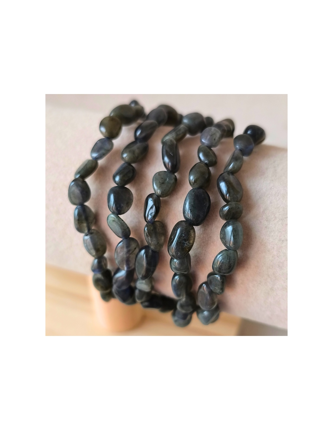 Bracelet pierres roulées en Labradorite noire (16–18 cm, qualité A, Madagascar)
