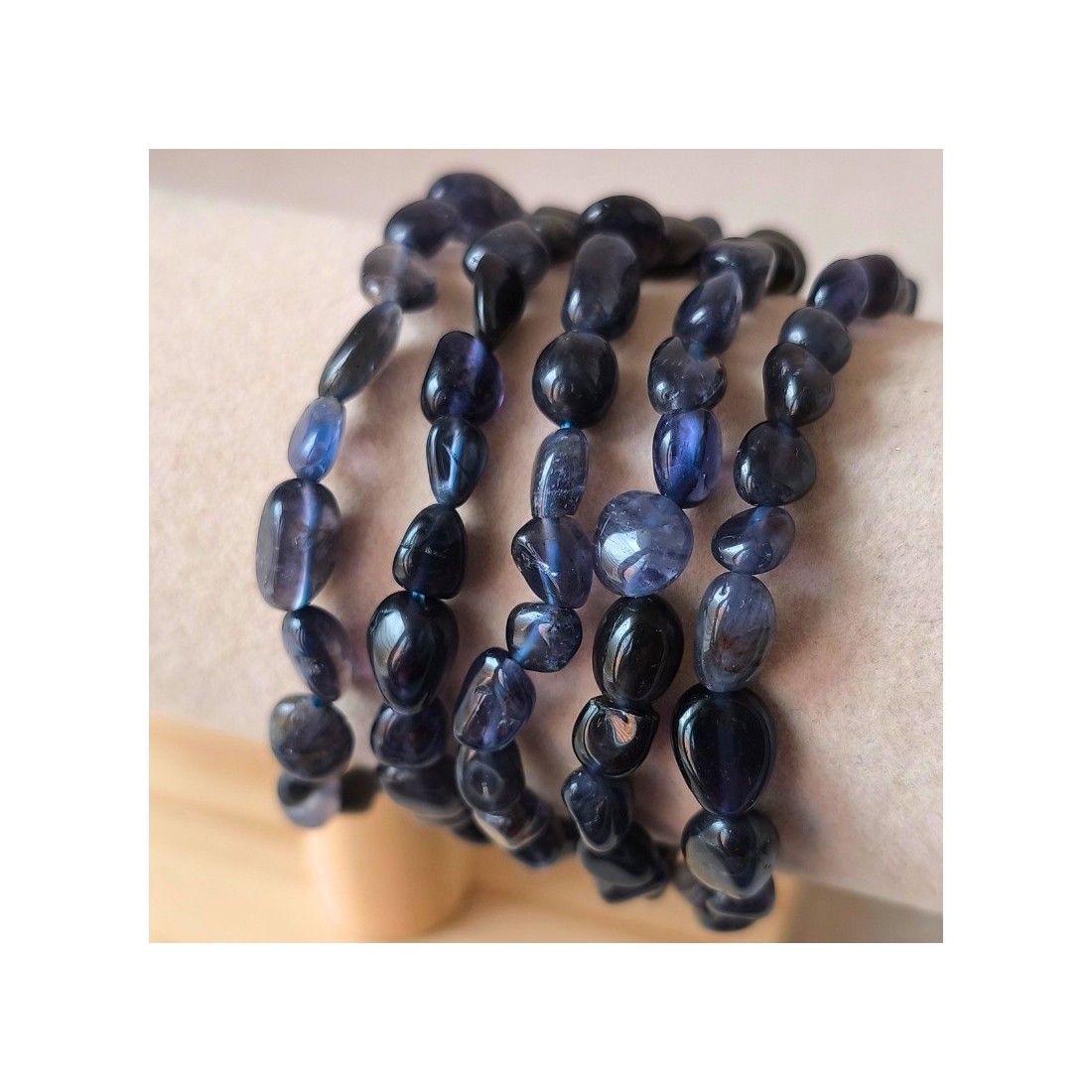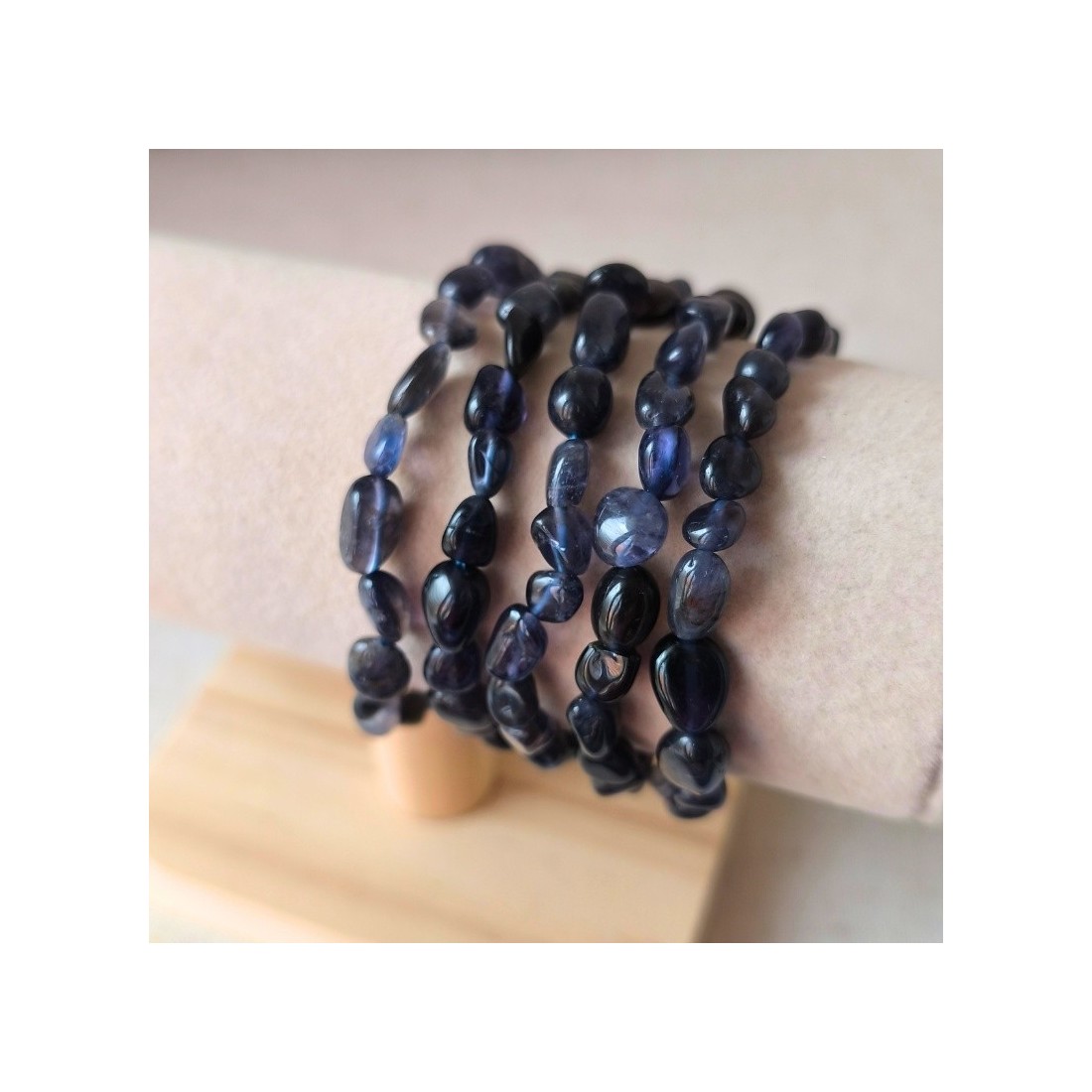 Bracelet en cordiérite naturelle (iolite) de qualité A+, originaire d’Inde.