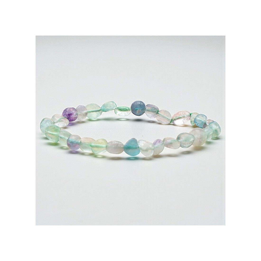 Bracelet en fluorine naturelle aux teintes vertes et violettes, pierre de calme et de clarté mentale.