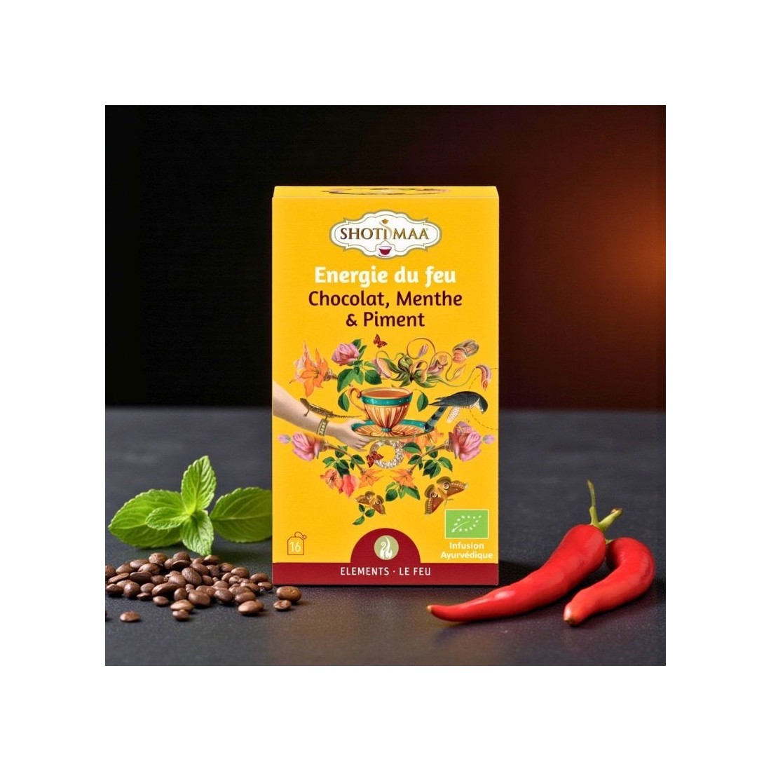 Tisane Énergie du feu - Chocolat, Menthe et Piment