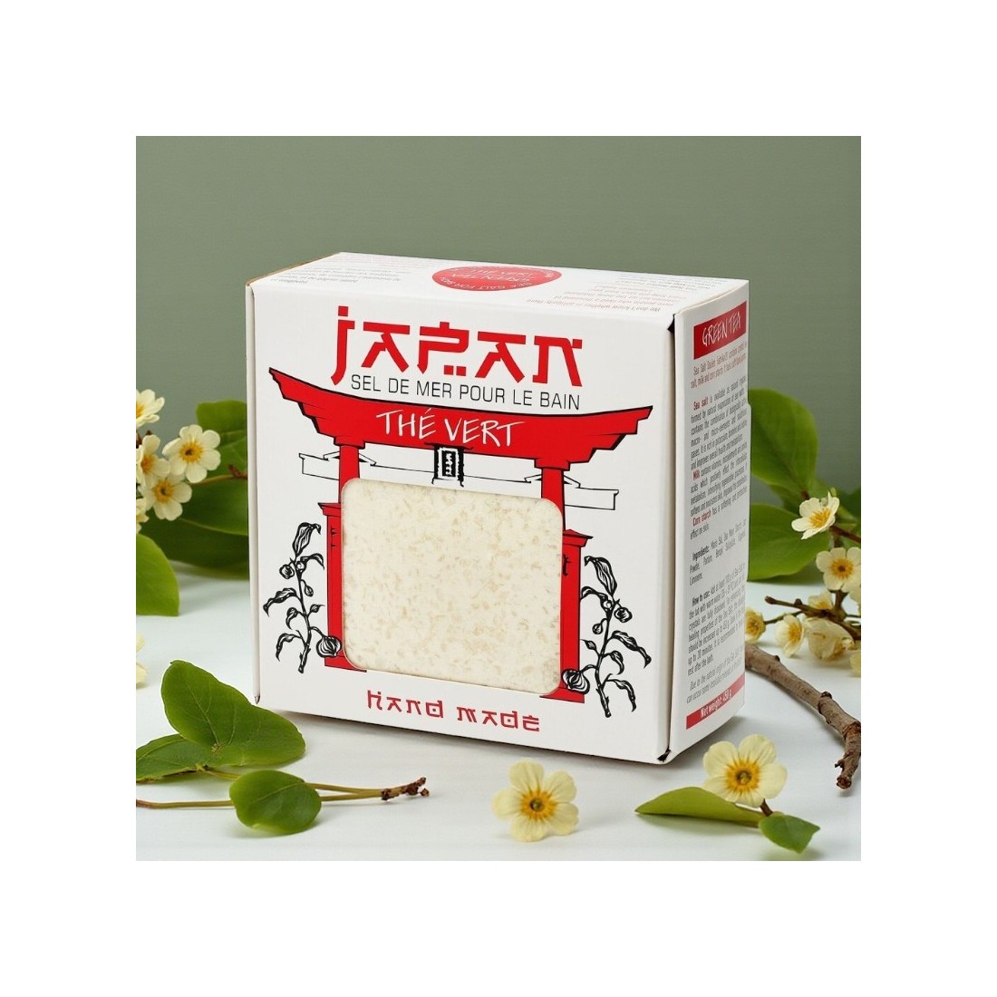 Inspiré des traditions de bien-être japonaises, le sel de bain “Japan – Thé Vert” associe le sel marin non raffiné à la douceur du lait et à la fécule de maïs pour un soin naturel et complet.