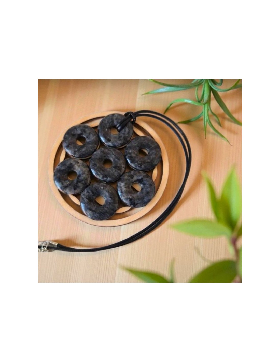 Pendentif donut en Larvikite – Protection et clarté