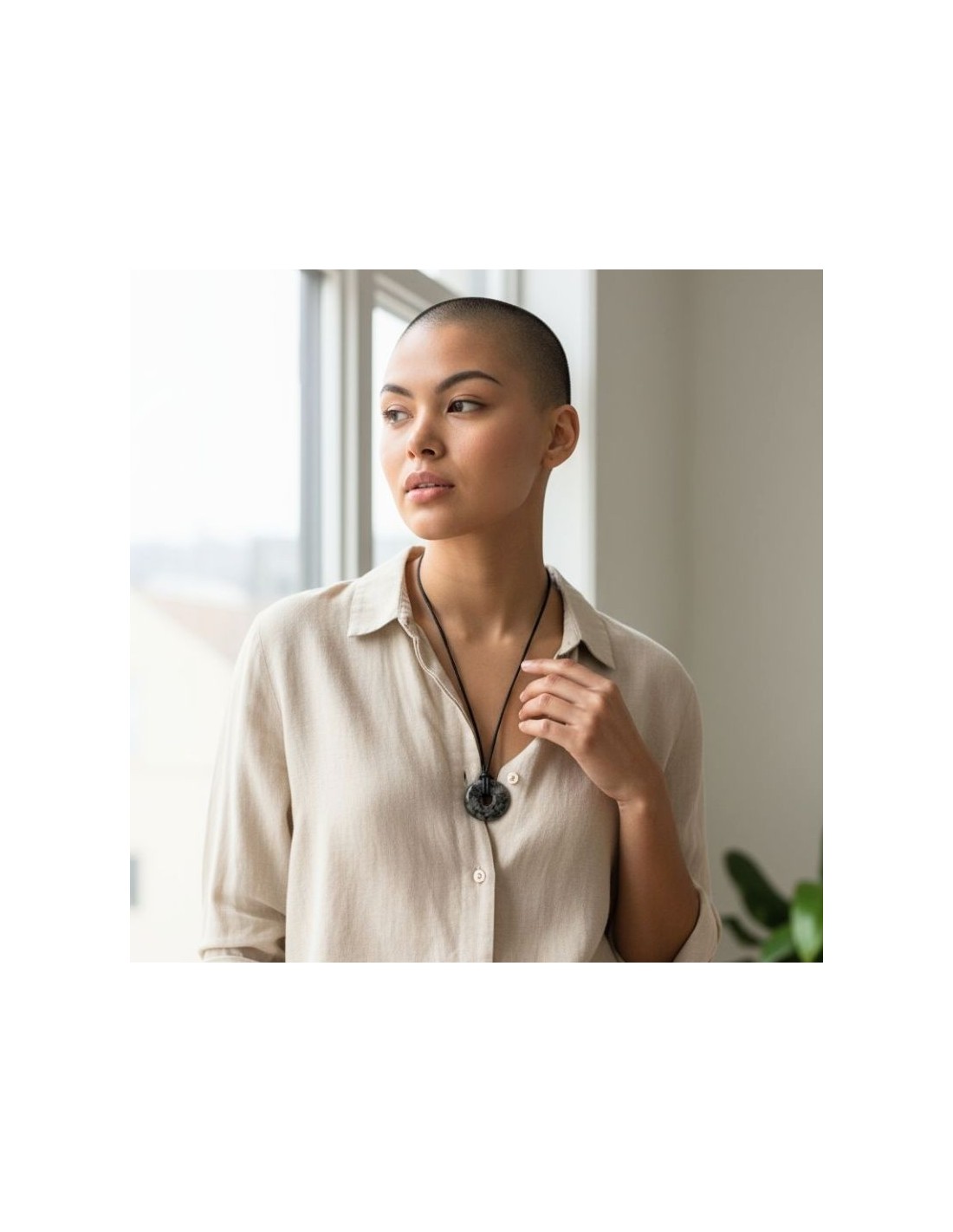 Ce pendentif Litho Terra, façonné en pierre naturelle qualité A issue d’une filière éthique (Norvège), marie élégance minérale et apaisement intérieur.