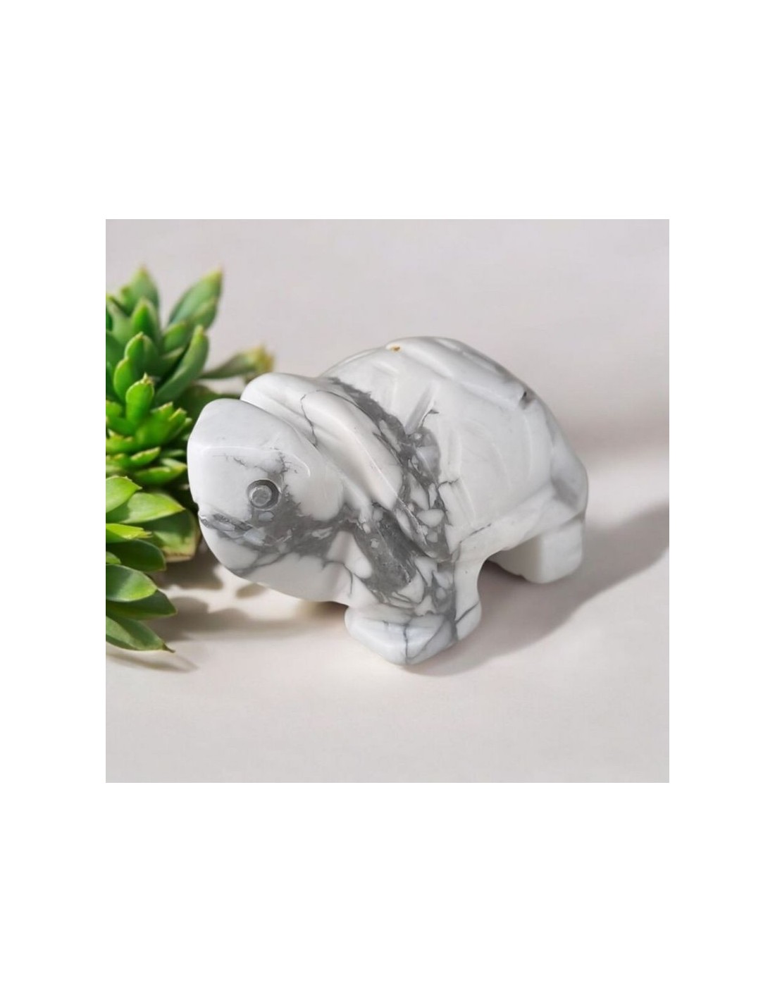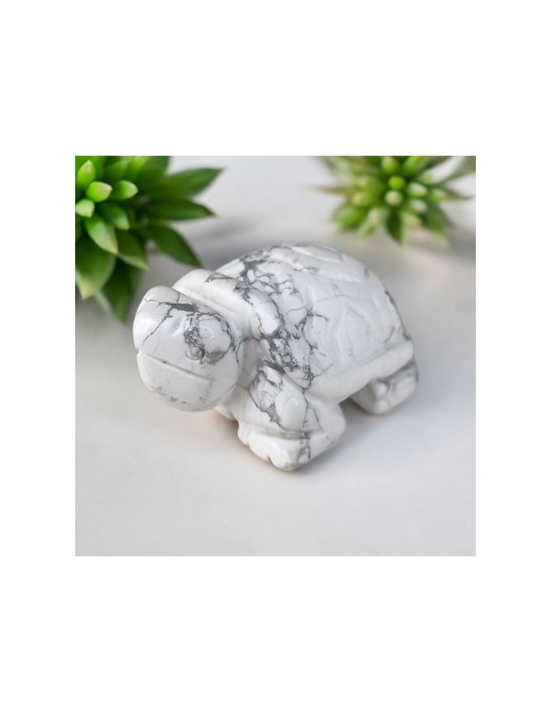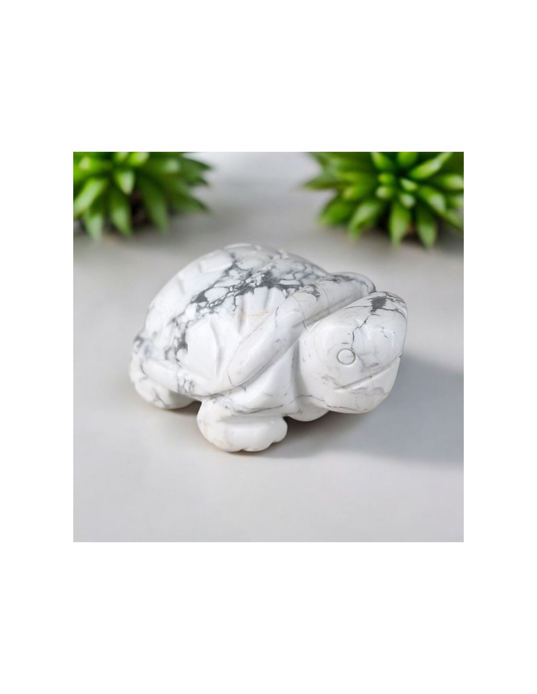 Tortue sculptée en Howlite blanche – Zimbabwe (qualité A, 50 mm)