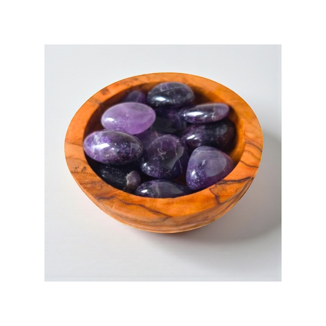 Pierre roulée en améthyste naturelle, aux nuances violettes douces et lumineuses, accompagnant le quotidien avec sérénité et intuition.