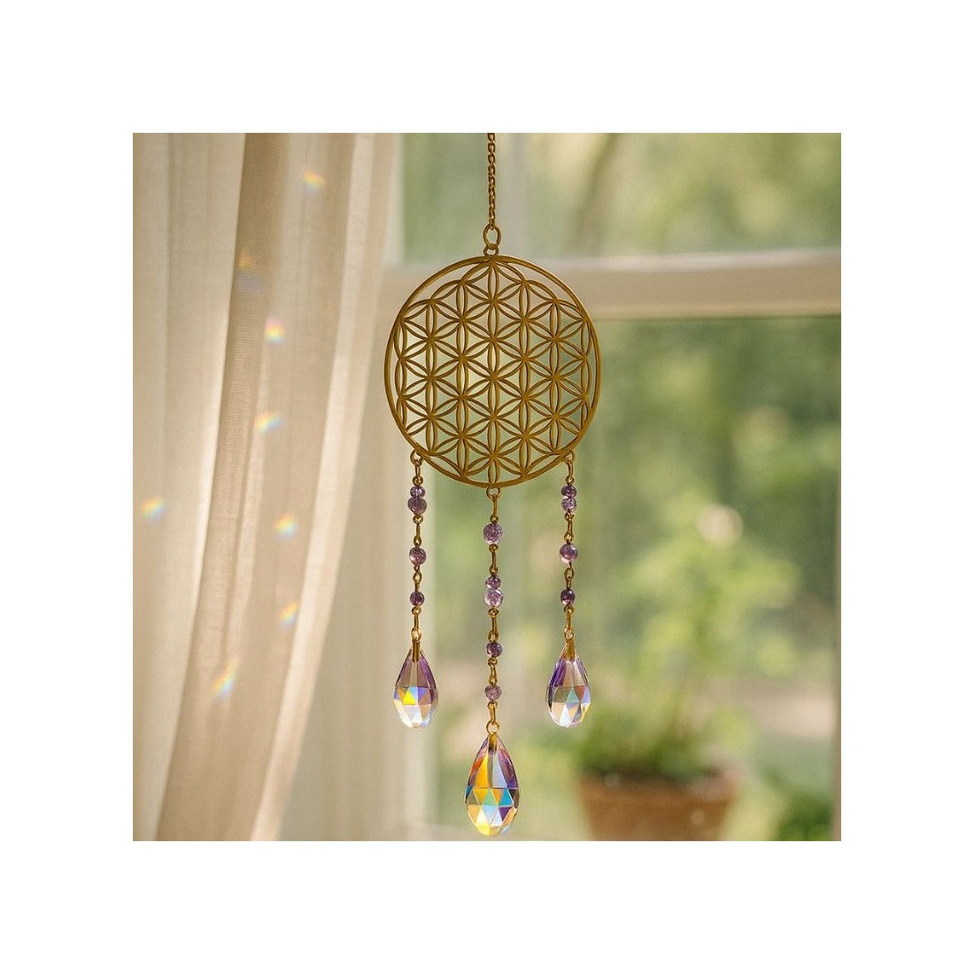 Attrape-soleil Fleur de Vie & Améthyste – Inde