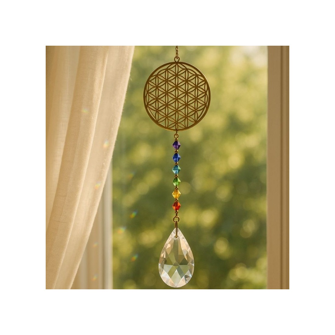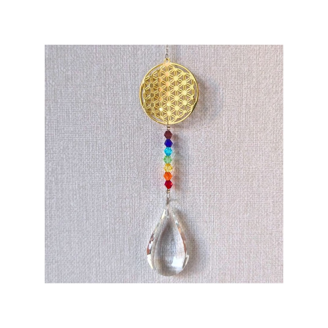 Attrape-soleil Fleur de Vie, Goutte de Cristal et Chaîne des Chakras - Inde