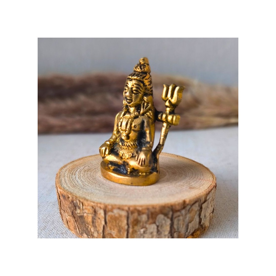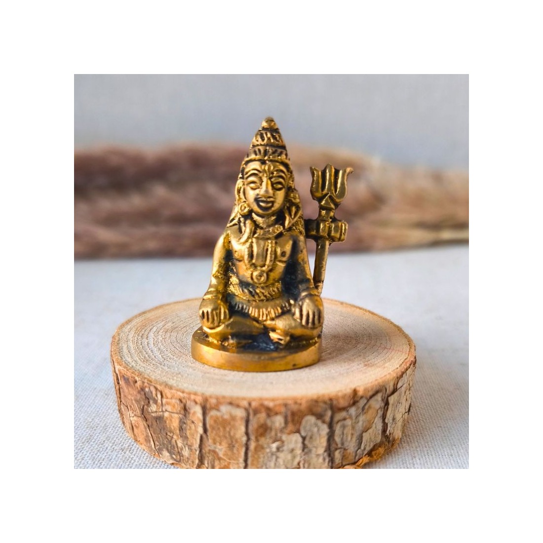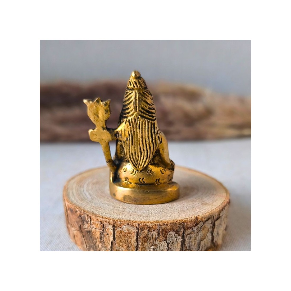 Sa finition dorée, son trident miniature (trishula) et ses détails sculptés en font un objet décoratif délicat, idéal pour un coin de méditation, une étagère ou un petit autel personnel.